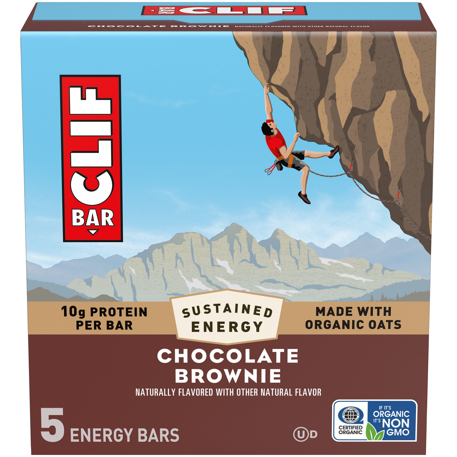 CLIF BAR - Chocolate Brownie Flavor - Made with Organic Oats - Energy Bars - Non-GMO - Plant Based Protein Bars (5 Pack)