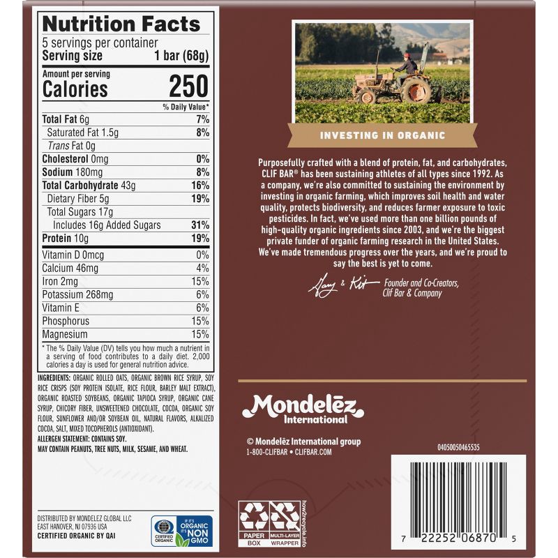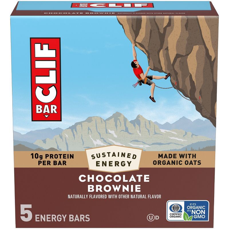 CLIF Bar Chocolate Brownie Granola Plant-Based Soy Protein Bar Made with Organic Oats - 10g Protein - 12oz/5ct