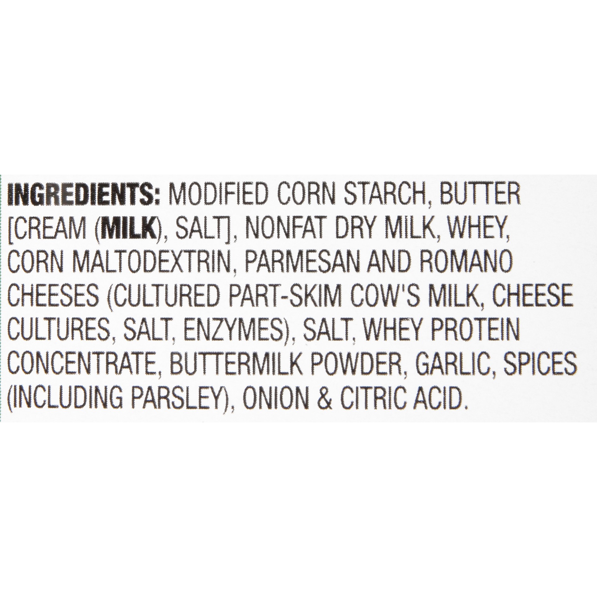 Modified Corn Starch, Butter [Cream (Milk), Salt], Nonfat Dry Milk, Whey, Corn Maltodextrin, Parmesan and Romano Cheeses (Cultured Part-Skim Cow''s Milk, Cheese Cultures, Salt, Enzymes), Salt, Whey Pr…