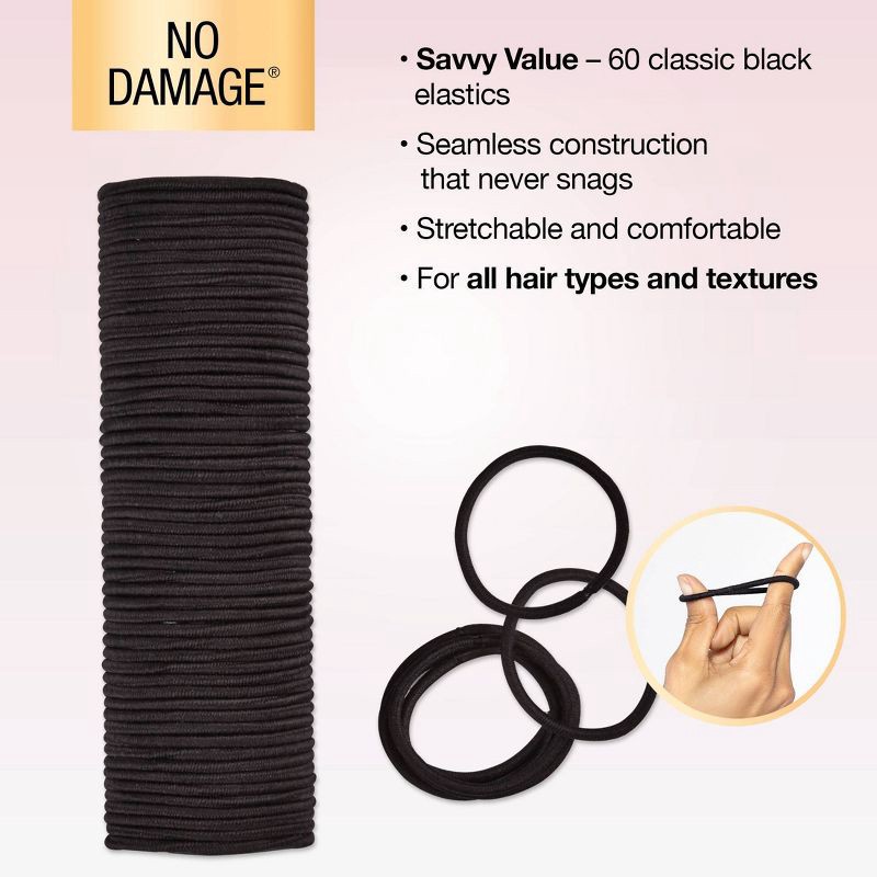 scunci scünci No Damage Elastic Hair Ties - Black - All Hair - 4mm - 60pcs: Hair Styling, Securing, Polyester