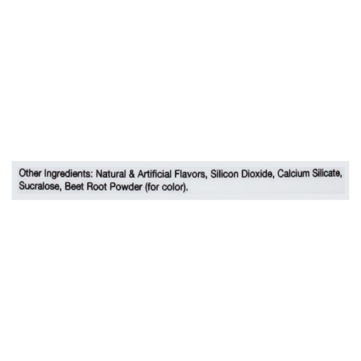 Other Ingredients: Natural & Artificial Flavors, Silicon Dioxide, Calcium Silicate, Sucralose, Beet Root Powder (for Color).