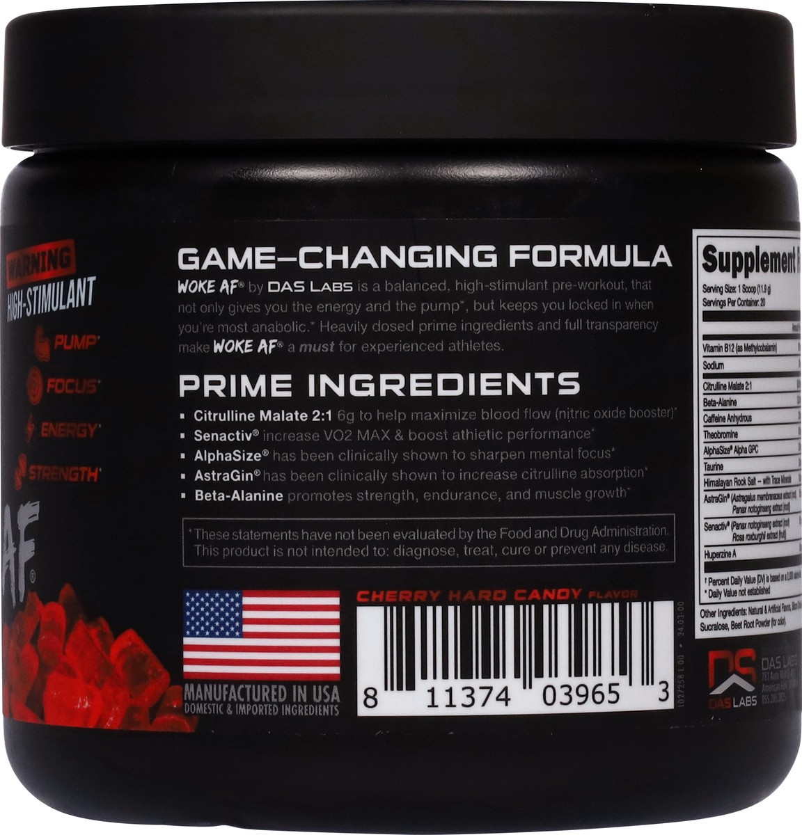 Woke AF Nootropic Cherry Candy Pre-Workout 8.4 oz