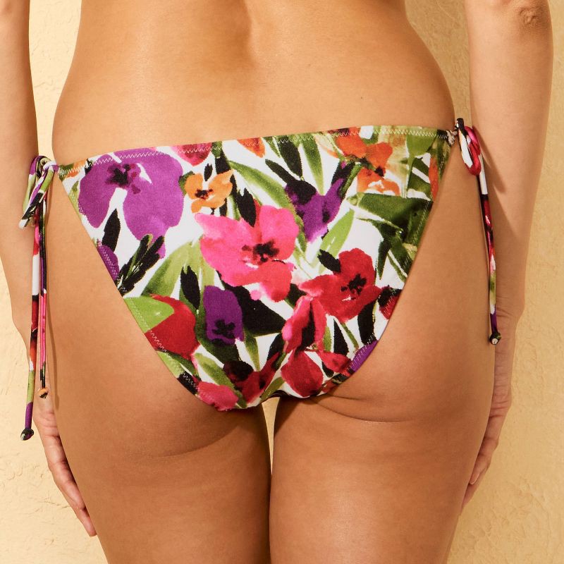 Women's Floral Print High Shine Cheeky Coverage String Tie Bikini Bottom - Shade & Shore™ Multi XS