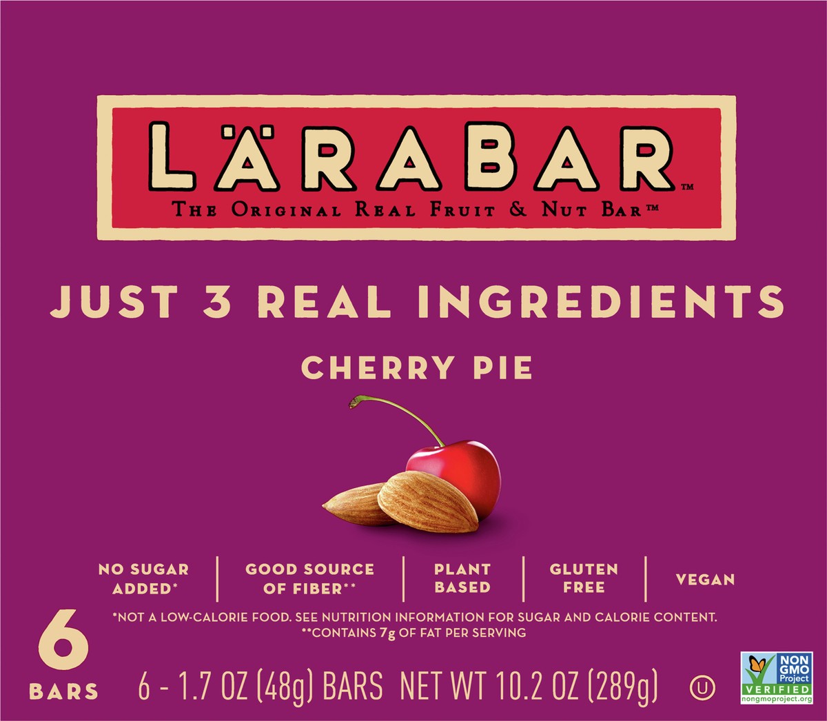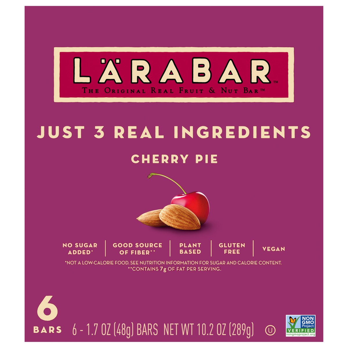 LÄRABAR Cherry Pie, Gluten Free Vegan Fruit & Nut Bars, 1.7 oz bars, 6 ct