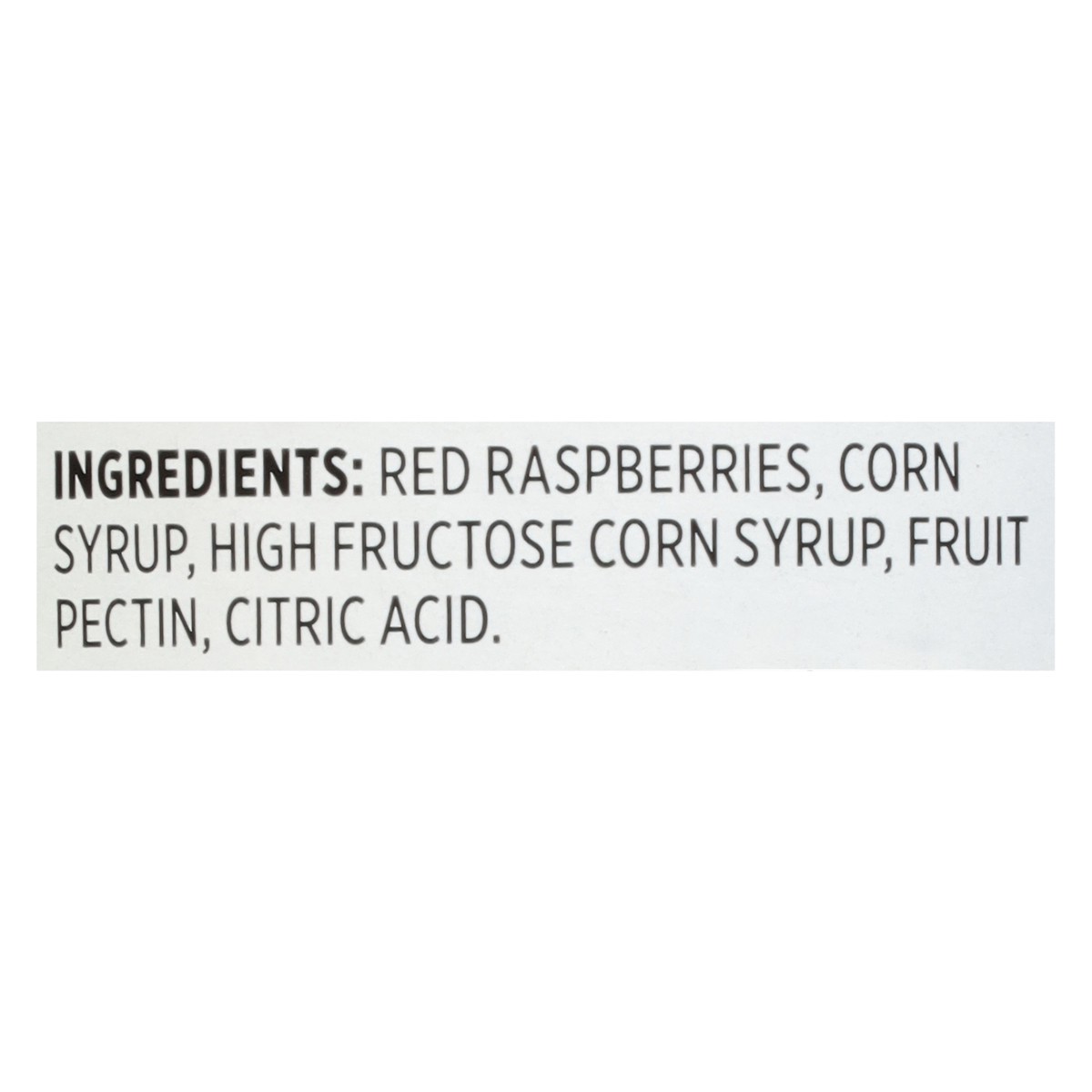 Red Raspberries, Corn Syrup, High Fructose Corn Syrup, Fruit Pectin, Citric Acid.