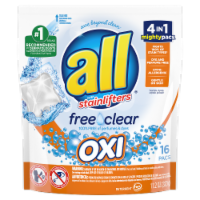 all Free Clear OXI Mighty Pacs are Tough on Stains, Gentle on Skin with concentrated cleaning power in a convenient pac for mighty results. all Free Clear is the #1 recommended detergent brand by derm…