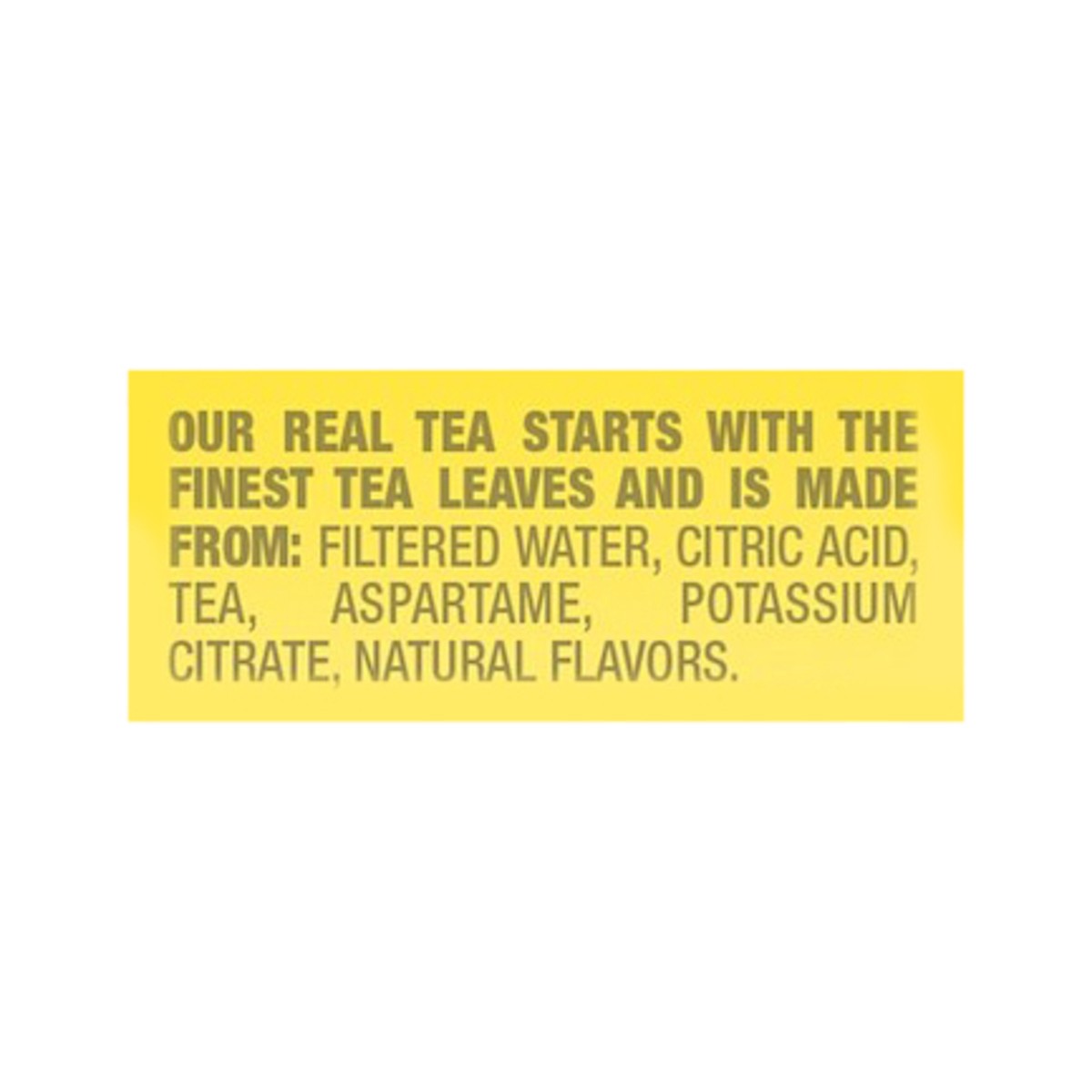 Our Real Tea Starts with the Finest Tea Leaves and is Made from: Filtered Water, Citric Acid, Tea, Aspartame, Potassium Citrate, Natural Flavors.