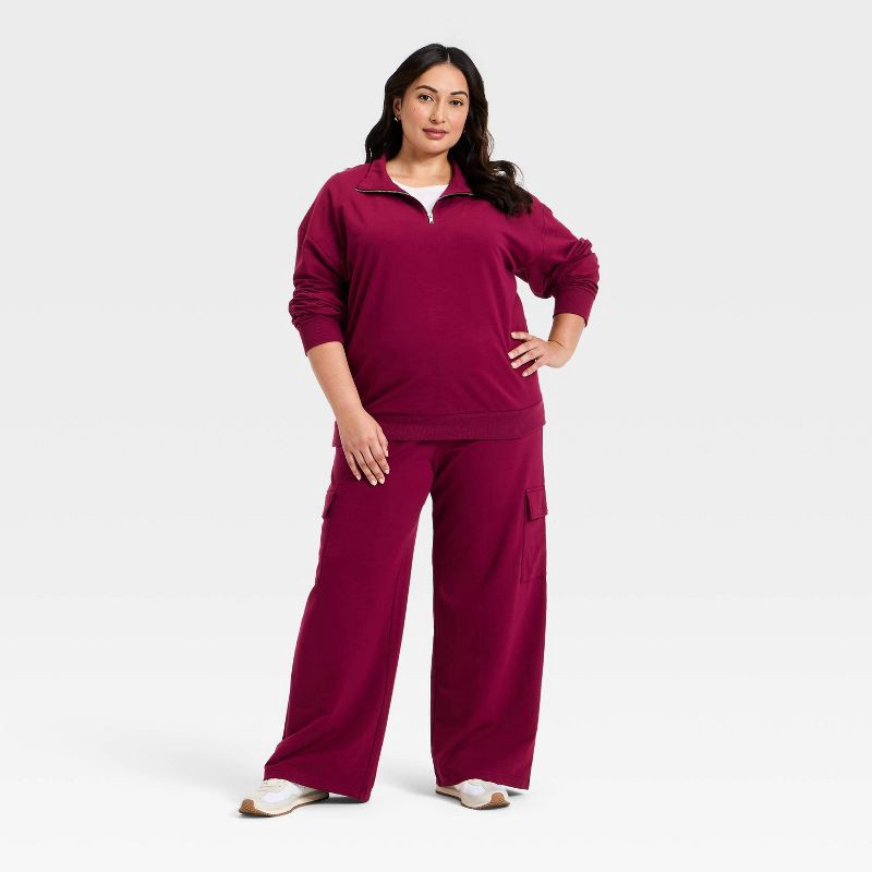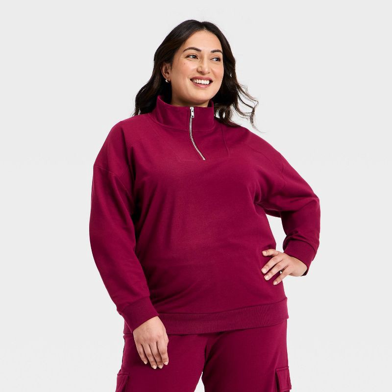 Women's French Terry Pullover Sweatshirt - Ava & Viv™ Burgundy 3X