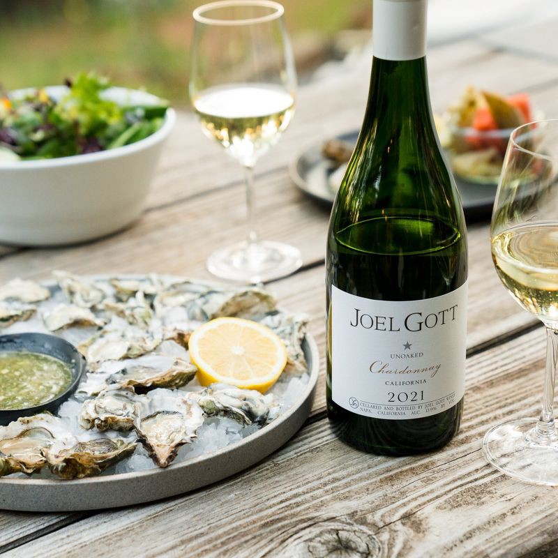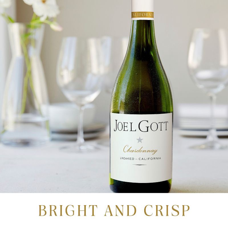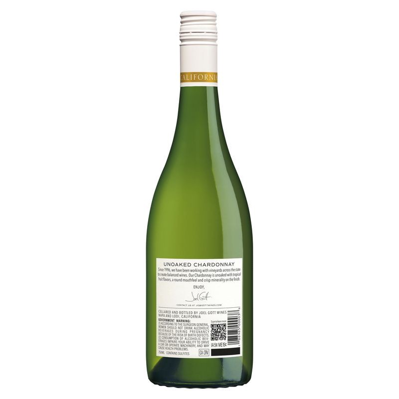 - One 750mL wine bottle of Joel Gott Unoaked Chardonnay White Wine, 13.9% ABV