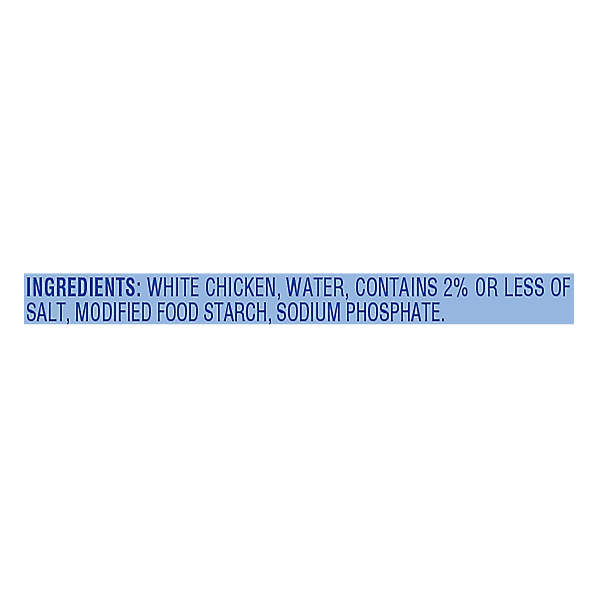 White Chicken, Water, Contains 2% or Less of Salt, Modified Food Starch, Sodium Phosphate.