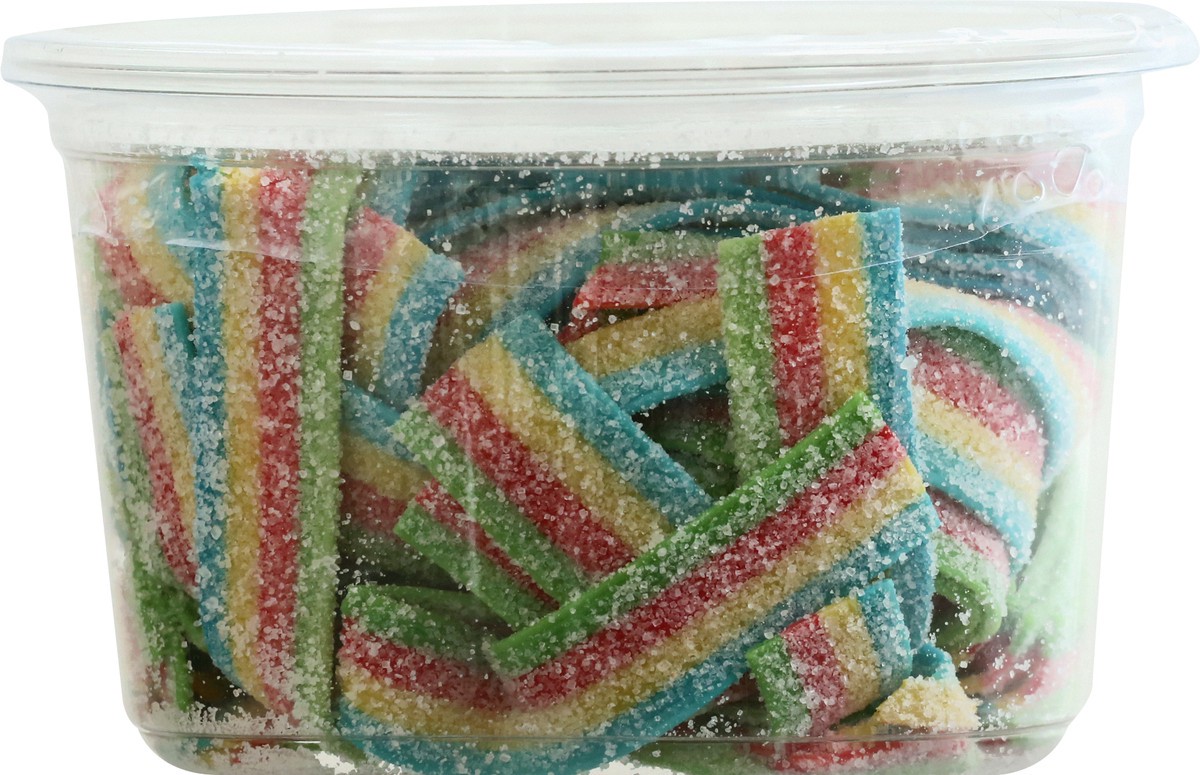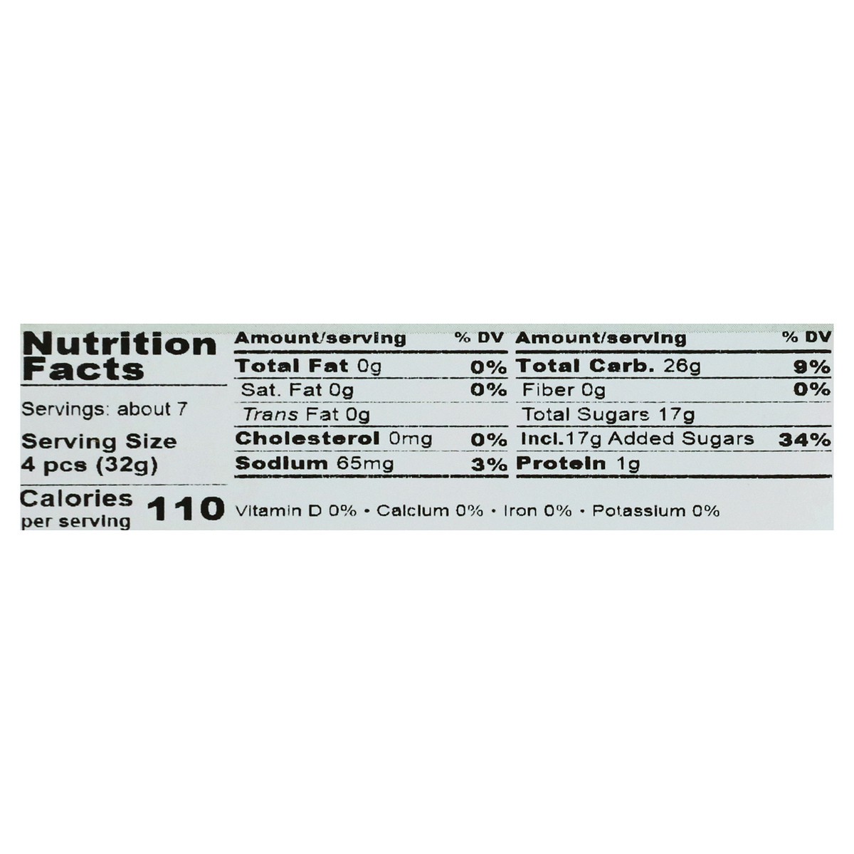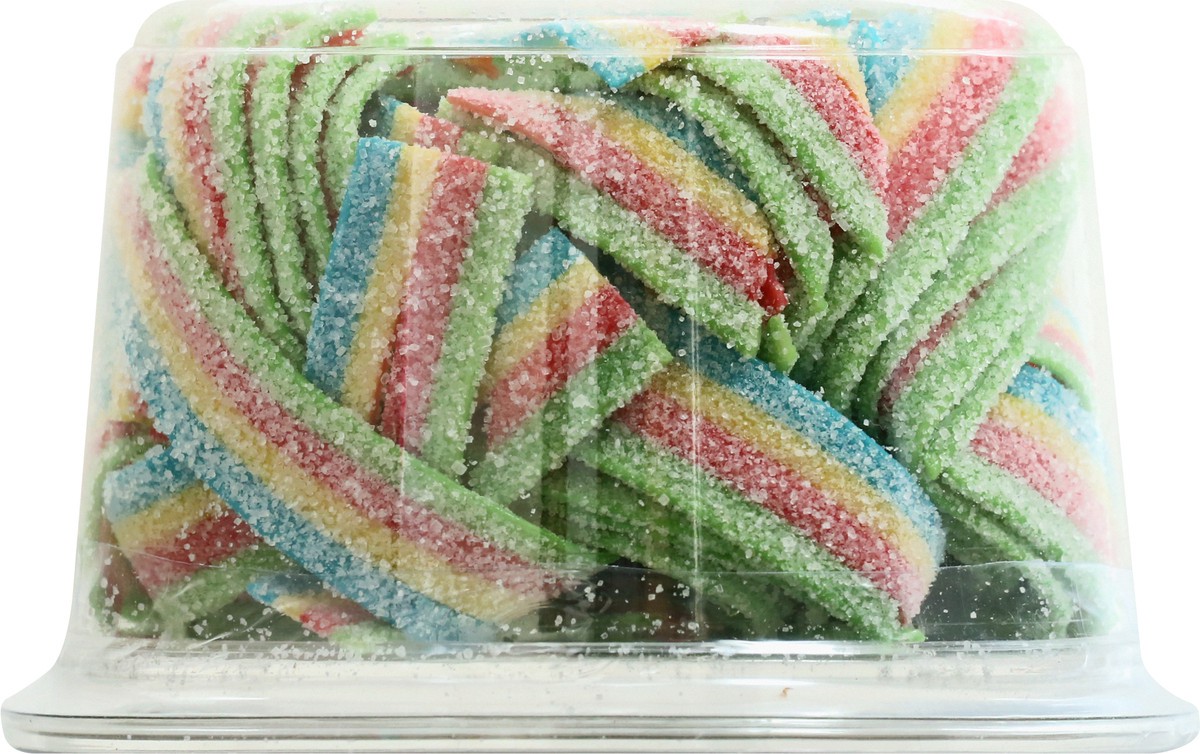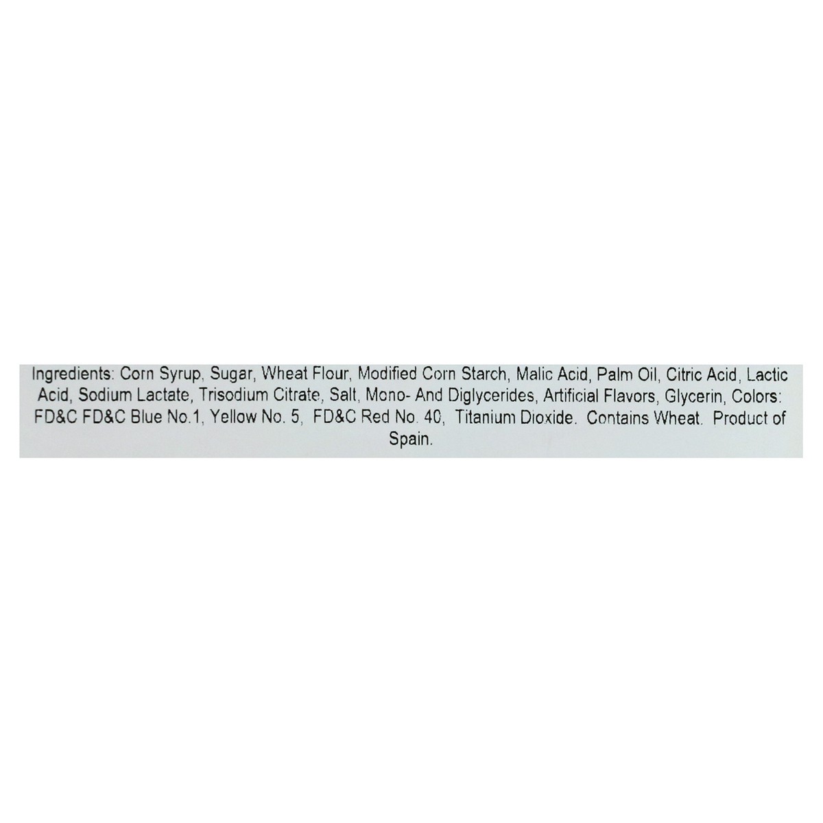 Corn Syrup, Sugar, Wheat Flour, Modified Corn Starch, Malic Acid, Palm Oil, Citric Acid, Lactic Acid, Sodium Lactate, Trisodium Citrate, Salt, Mono- and Diglycerides, Artificial Flavors, Glycerin, Col…