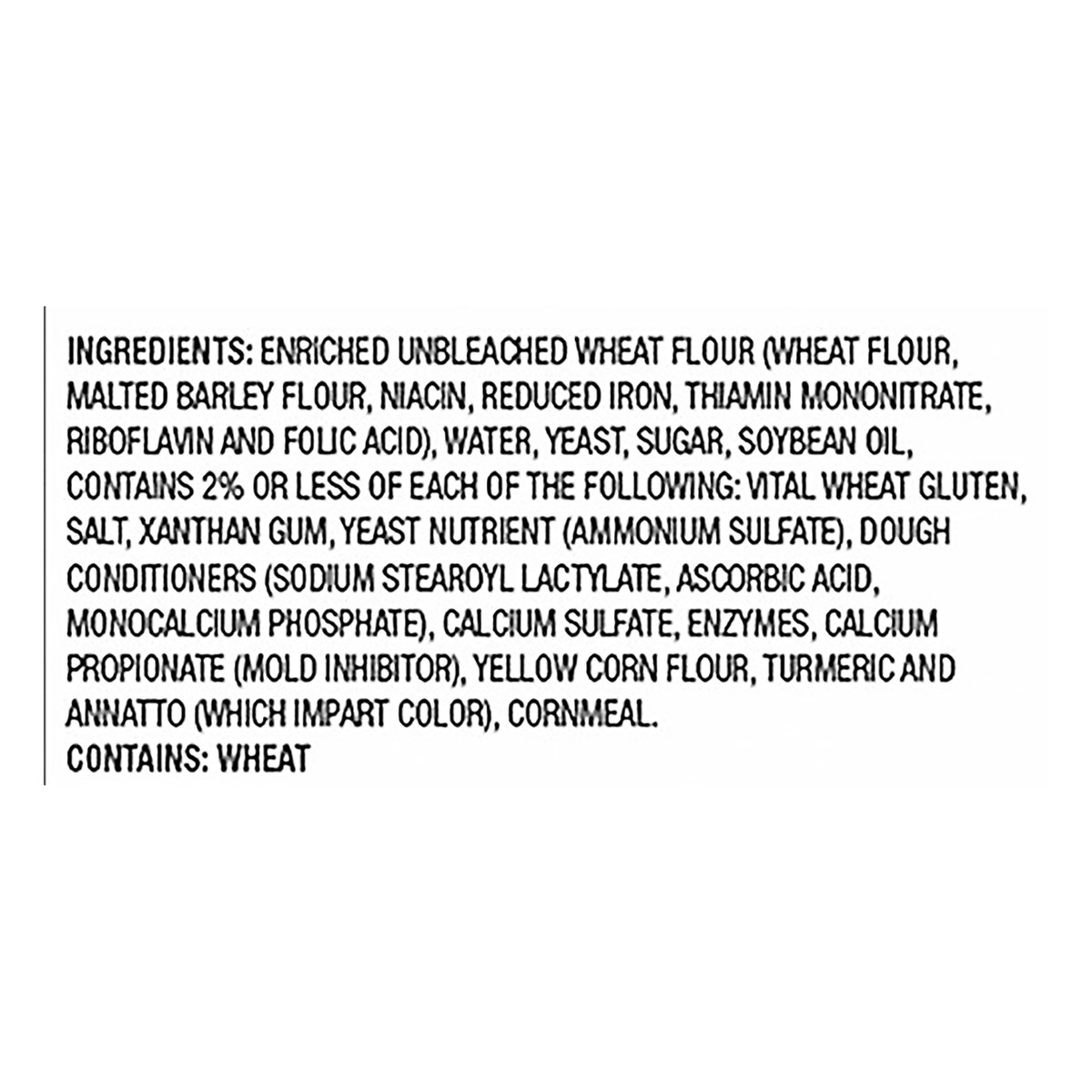 Enriched Unbleached Wheat Flour (Wheat Flour, Malted Barley Flour, Niacin, Reduced Iron, Thiamin Mononitrate, Riboflavin and Folic Acid), Water Yeast, Sugar, Soybean Oil, Contains 2% or Less Each of t…