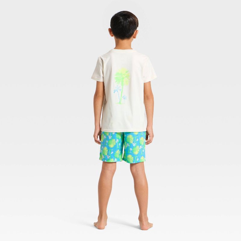 Boys' 2pc Palm Tree T-Shirt and Shorts Pajama Set - Cat & Jack™ Cream/Turquoise Green L