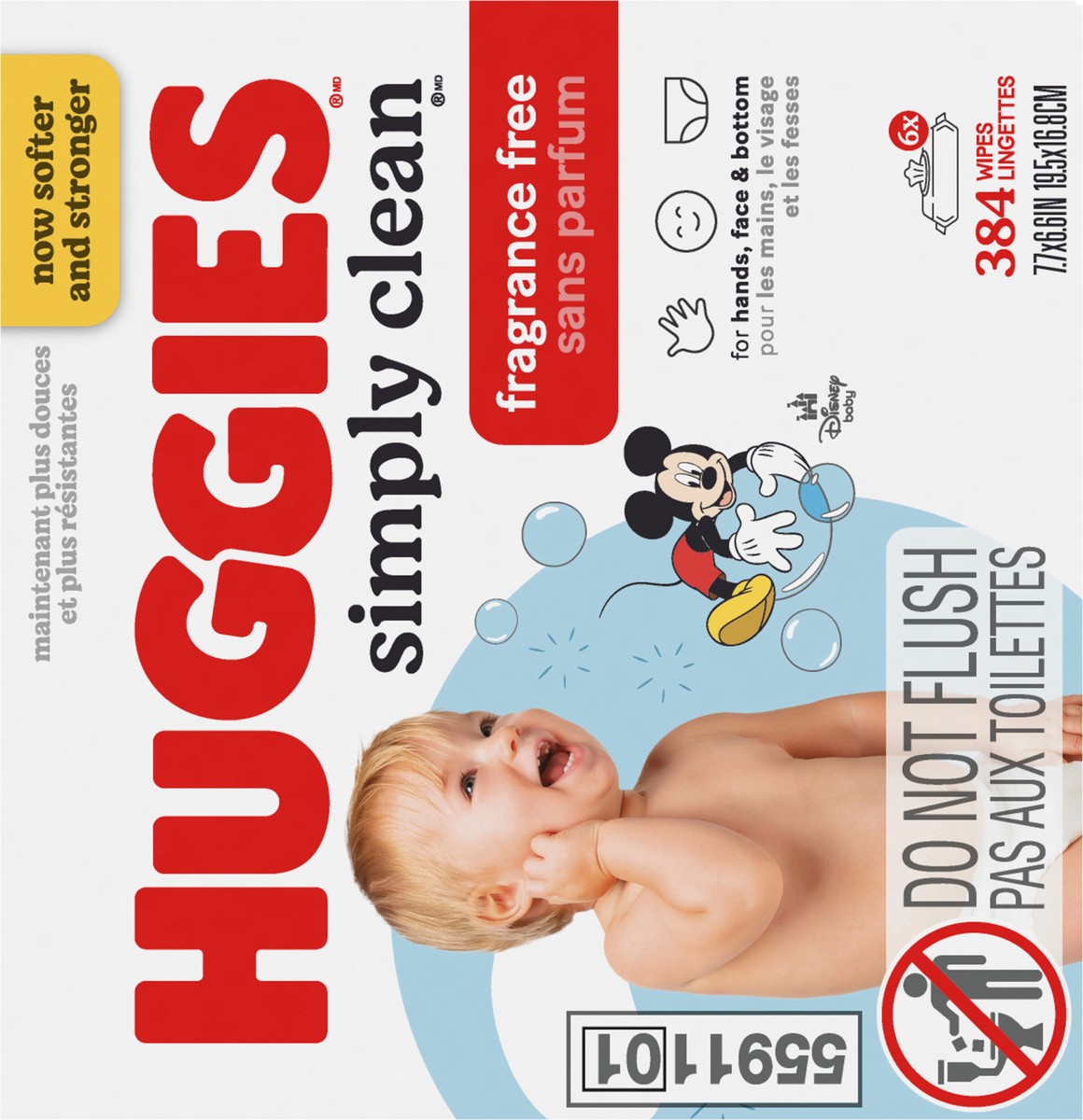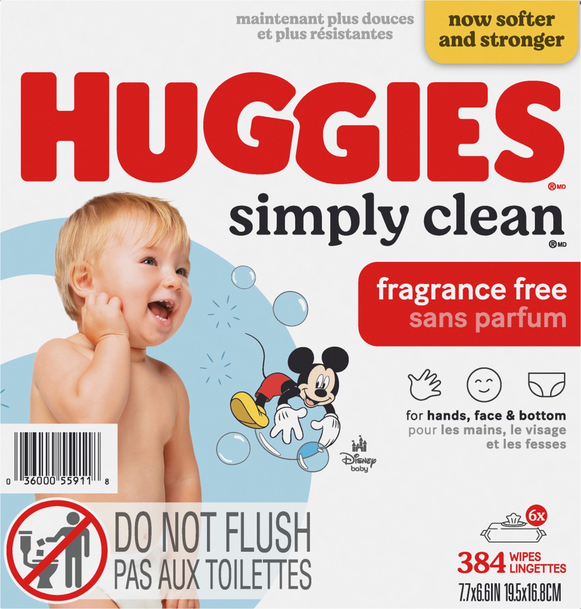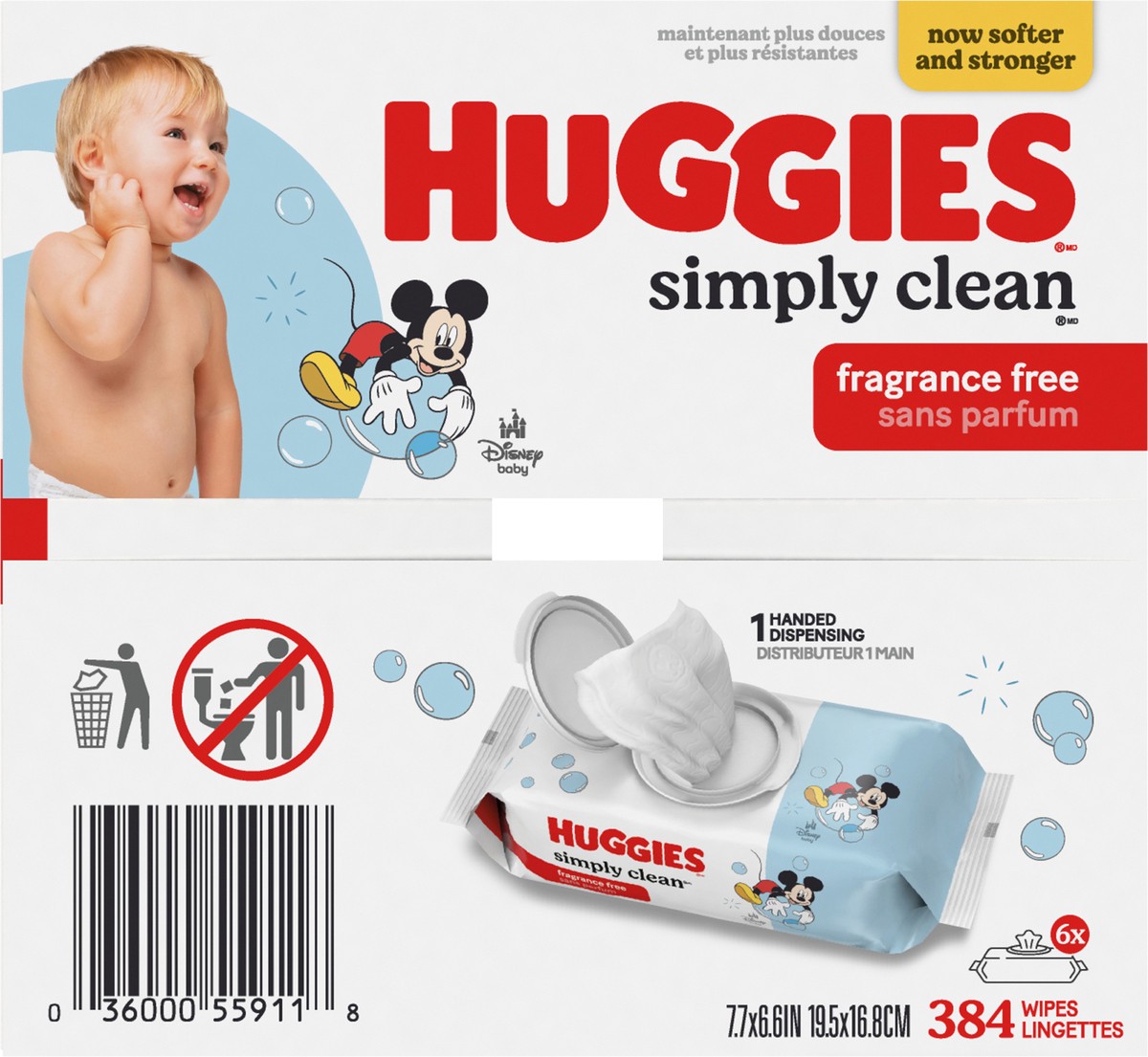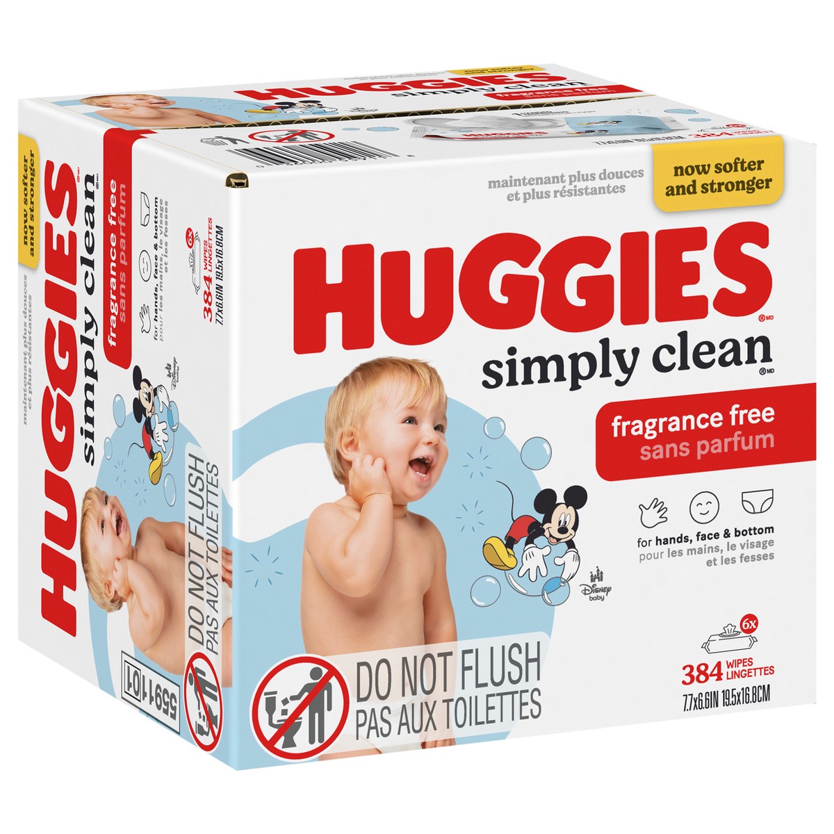 Huggies Simply Clean Unscented Baby Wipes, 6 Flip-Top Packs (384 Wipes Total)