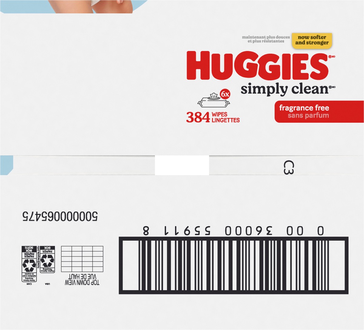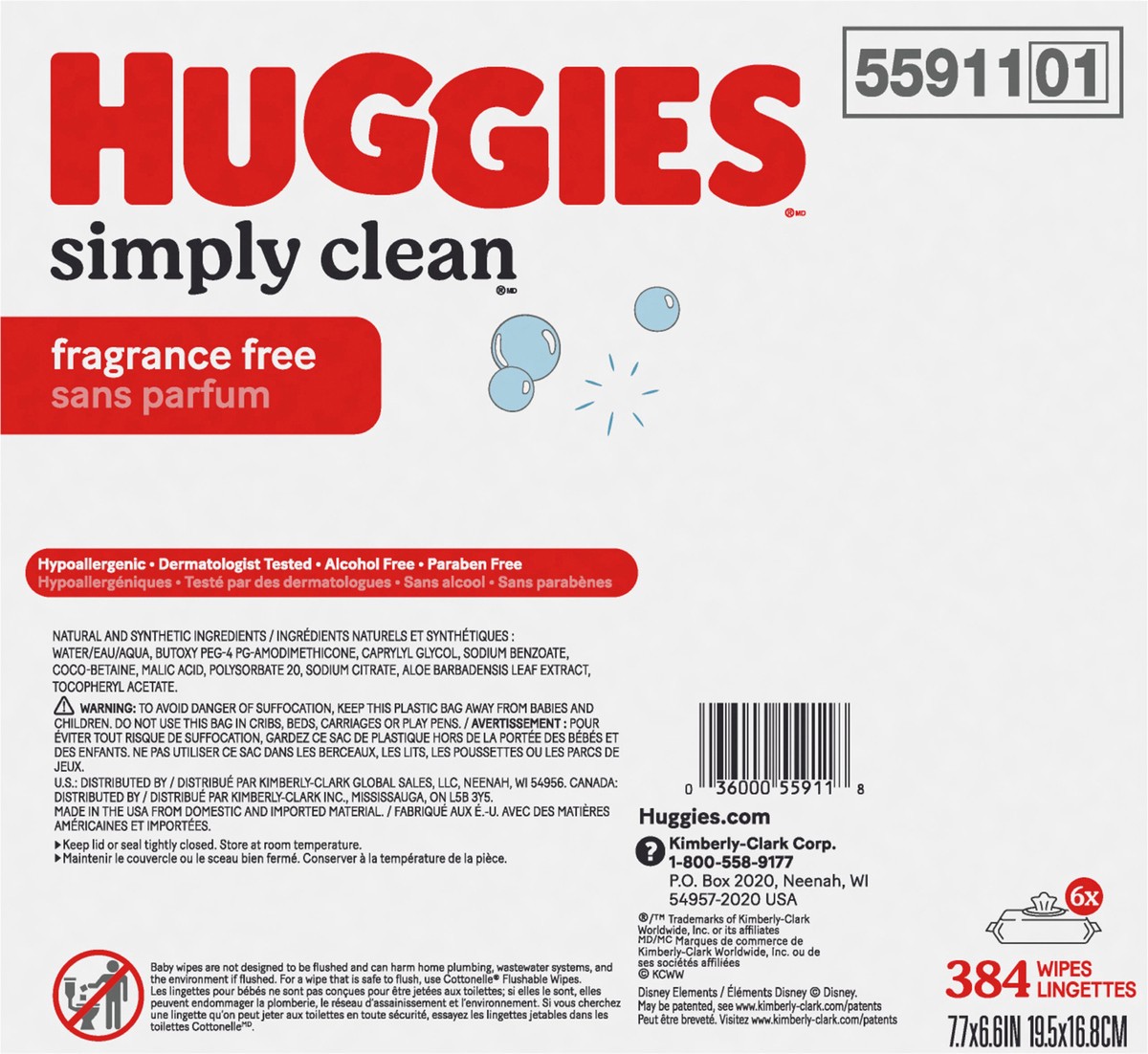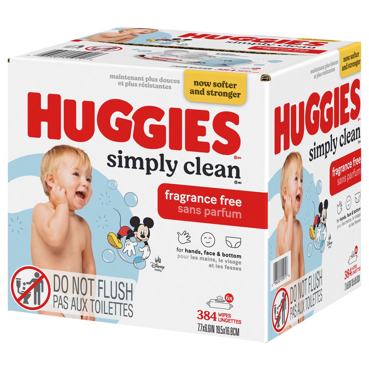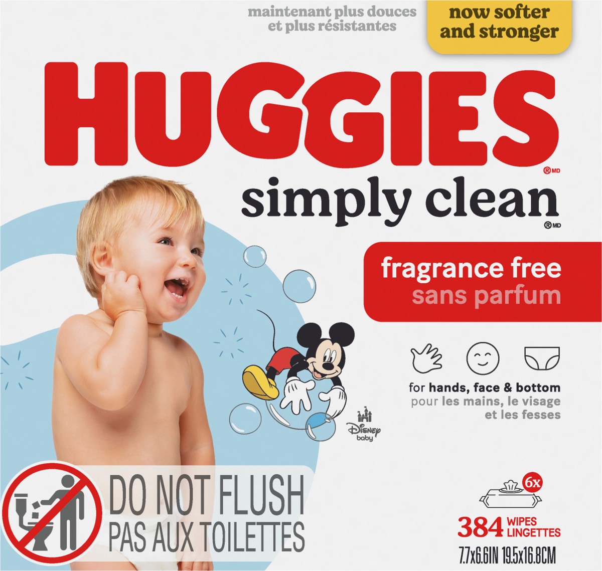 Huggies Simply Clean Unscented Baby Wipes, 6 Flip-Top Packs (384 Wipes Total)