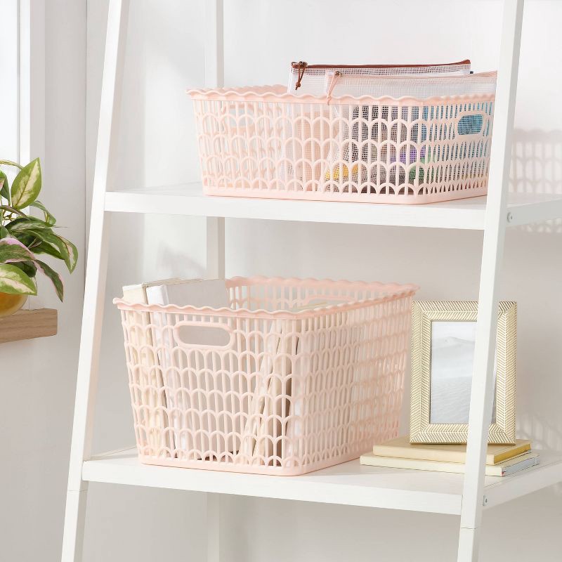 Keep your space organized and stylish with this Wave Scallop Decorative Basket from Brightroom™. Made from post-consumer recycled plastic, this decorative basket features a rectangle shape with wave s…