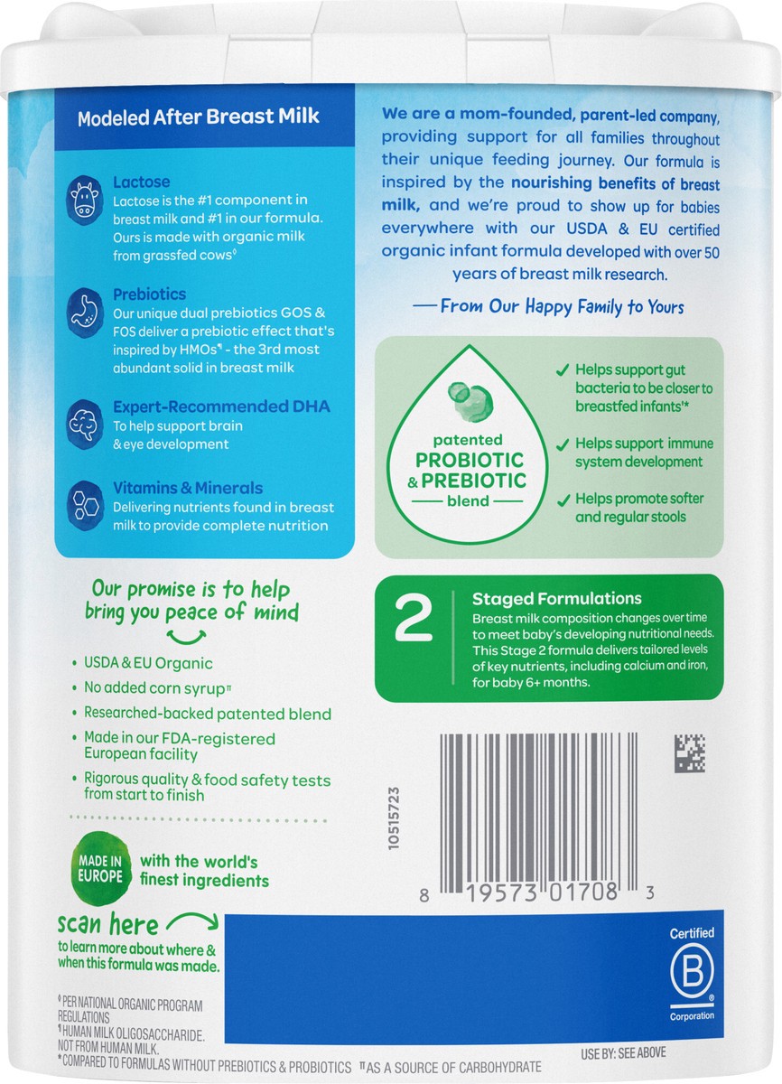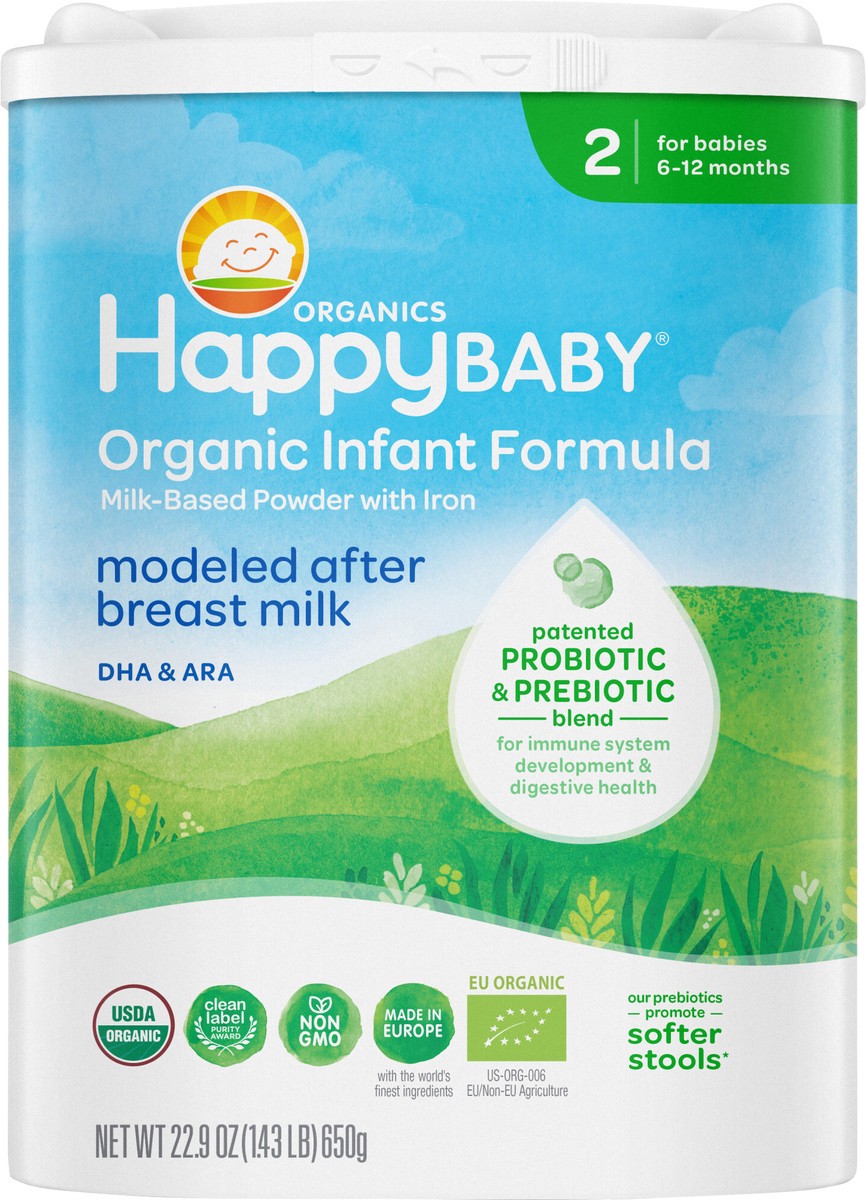 Happy Baby Organics Stage 2 Infant Formula, 6-12 Months, Milk Based Organic Baby Formula Powder with Iron, Probiotics & Prebiotics for Immune & Digestive Support, 22.9 oz