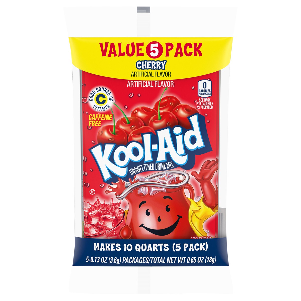 - KOOL-AID POWDER: Five 0.13 oz packets of Kool-Aid Artificially Flavored Unsweetened Cherry Powdered Drink Mix