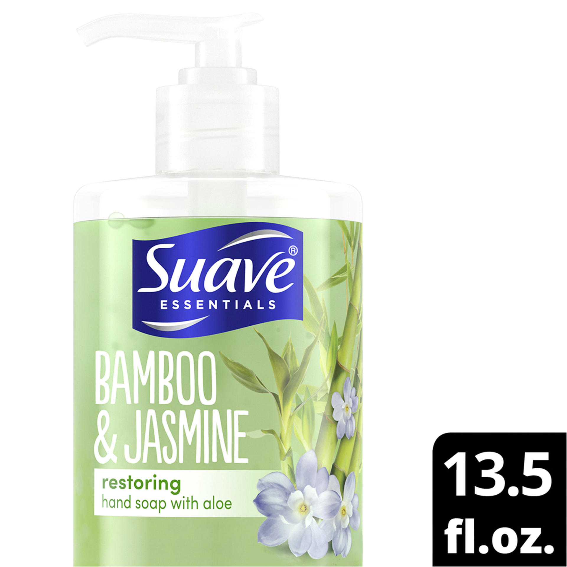 Imagine yourself in a bamboo forest Suave Essentials Bamboo Jasmine Restoring Hand Soap with aloe washes away dirt and germs without leaving hands feeling dry. These days, we are washing our hands mo…