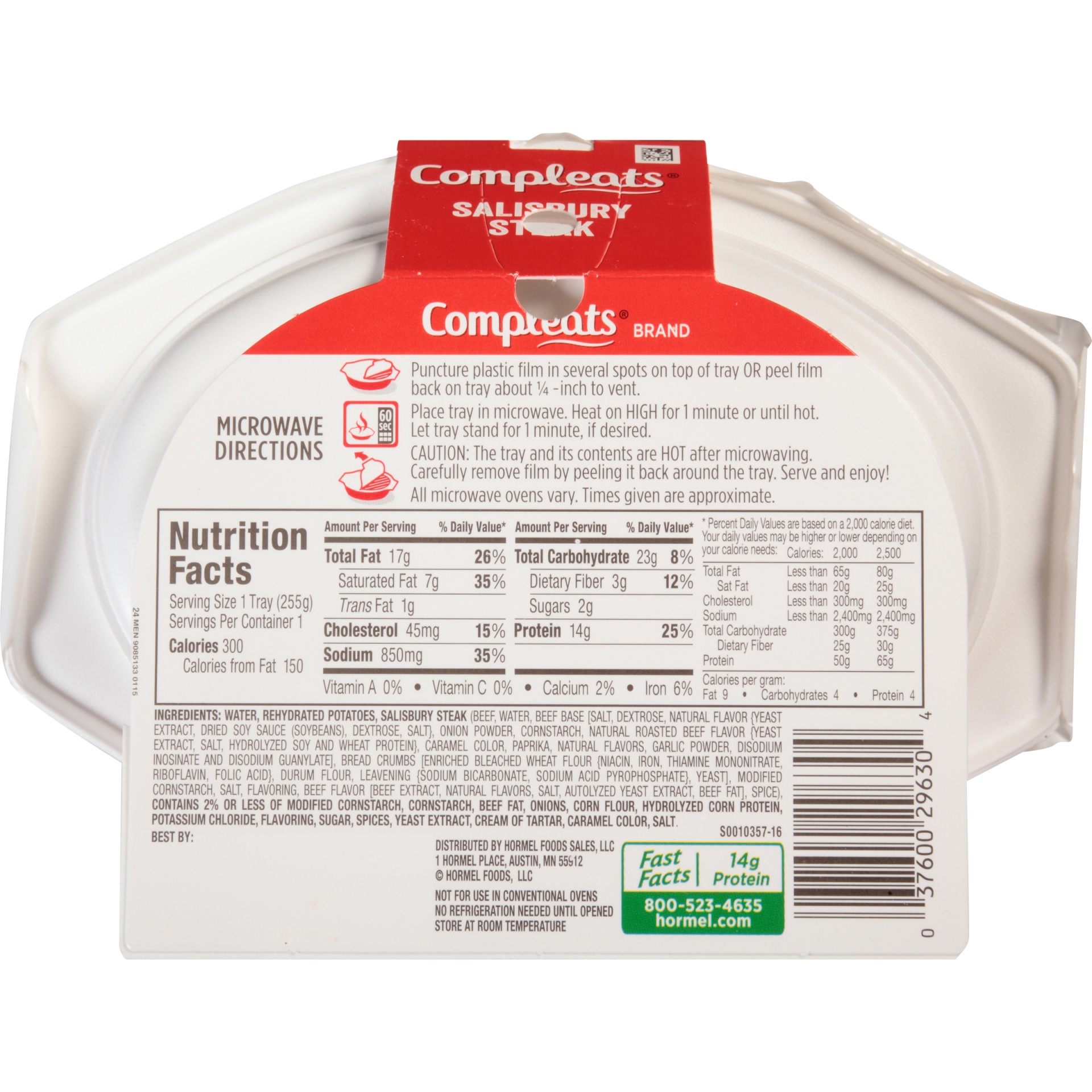 Salisbury steak with sliced potatoes and a rich, brown gravy. 14 g protein. Fast Facts: 14 g protein. Since 1891. Ready in 60 seconds. US inspected and passed by Department of Agriculture. hormel.com.