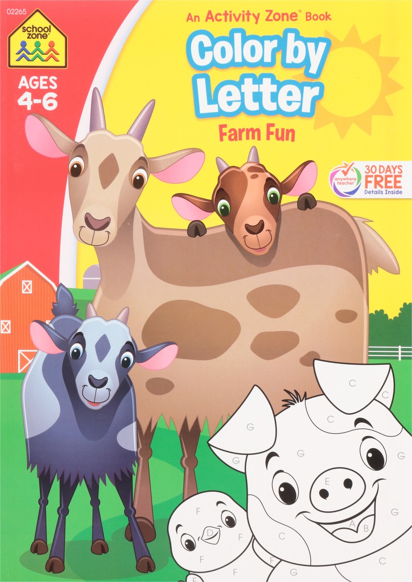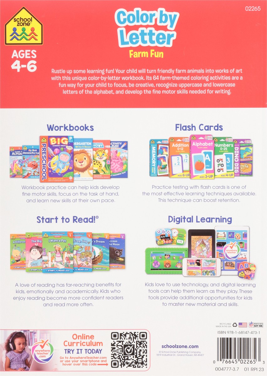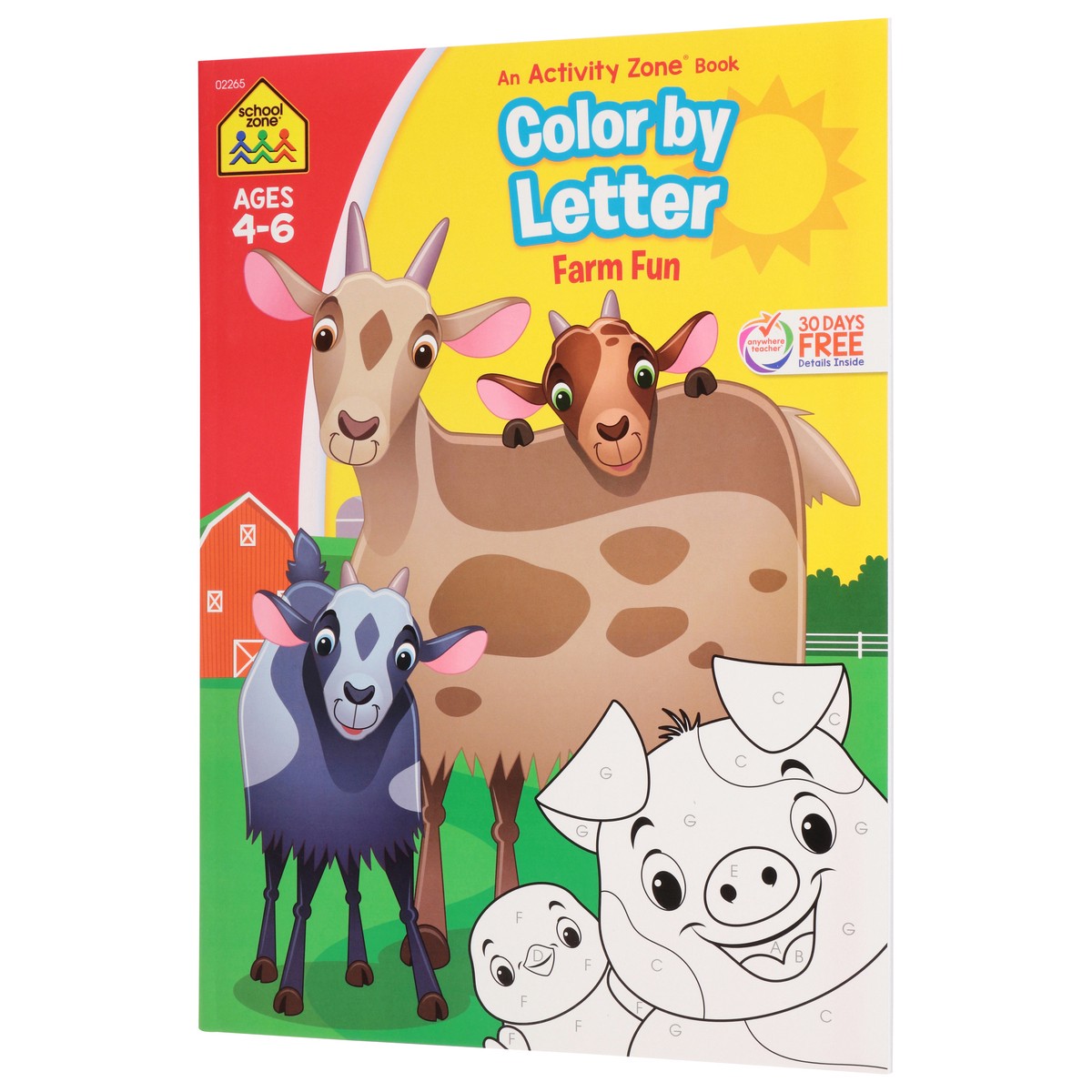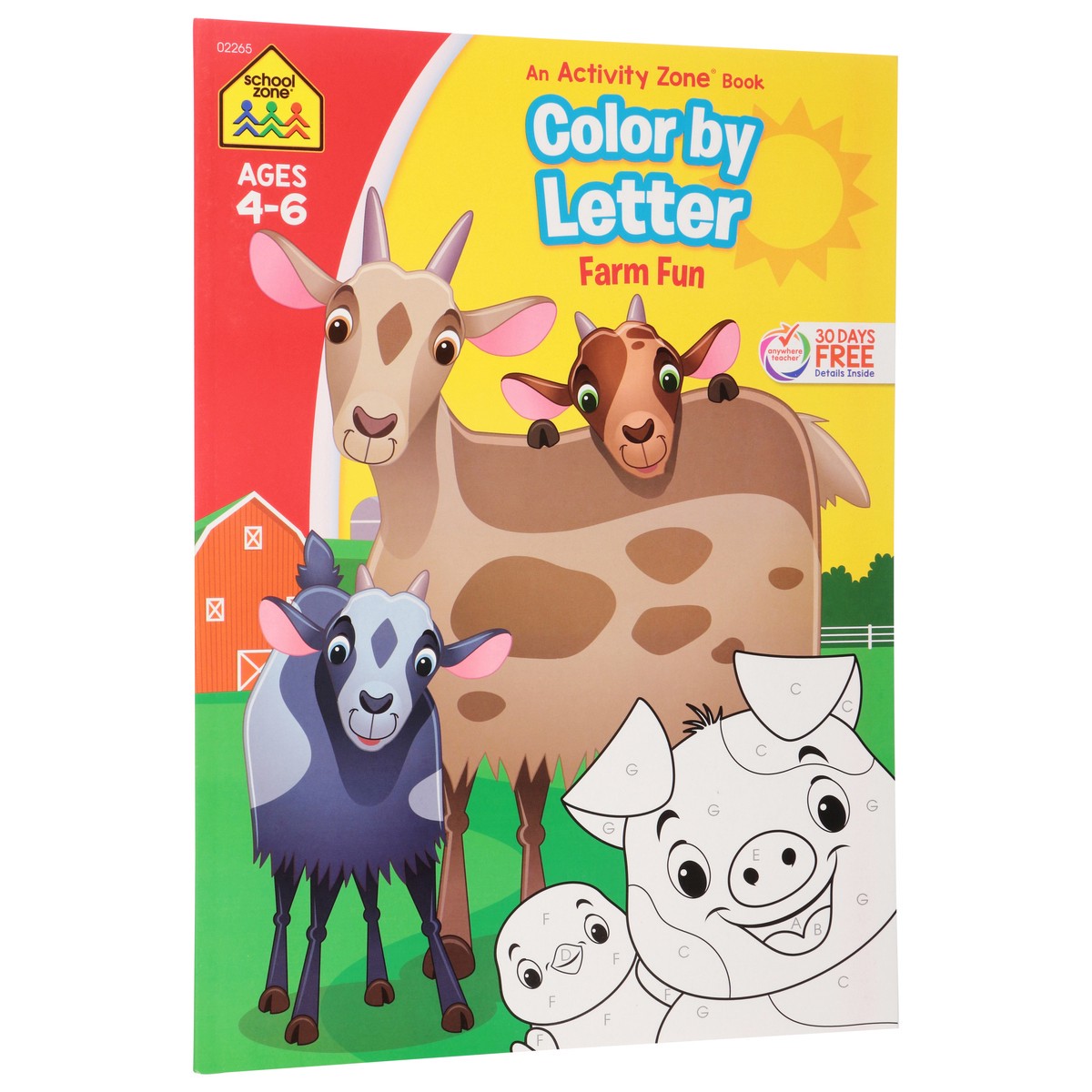 Rustle up some serious learning by completing playful farm scenes. In this workbook from the Activity Zone series its a different take on color-by-number! The picture is divided into areas with a lett…