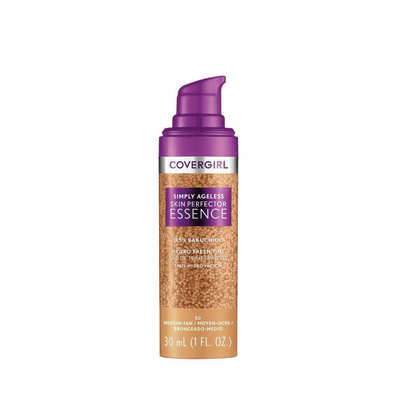 COVERGIRL Simply Ageless Skin Perfector Essence Vegan Foundation - 50 Medium Tan - 1 fl oz: Finish, Paraben-Free, Suitable for All Skin Types