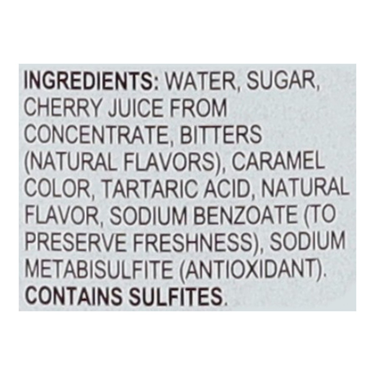 Water, High Fructose Corn Syrup, Natural Flavor, Tartaric Acid, Caramel Color, Sodium Benzoate, Potassium Sorbate.