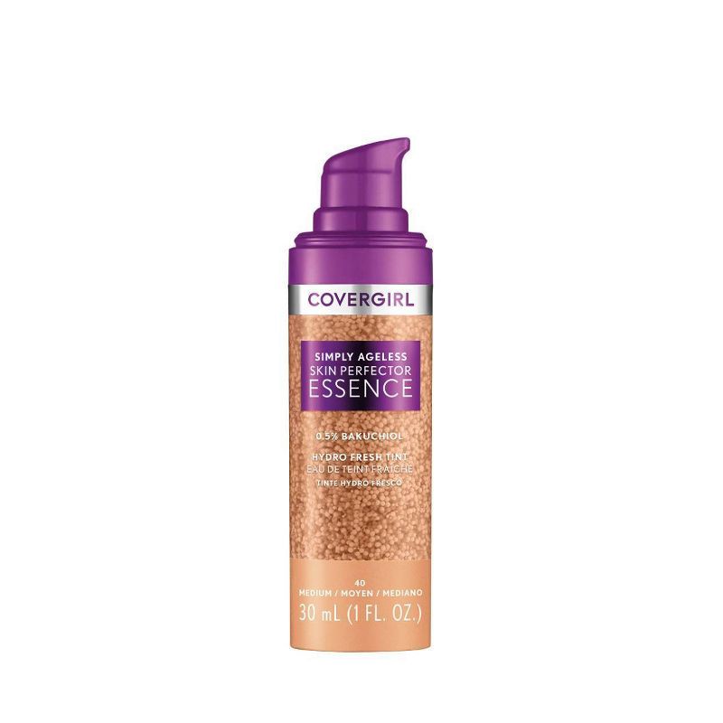 COVERGIRL Simply Ageless Skin Perfector Essence Vegan Foundation - 40 Medium - 1 fl oz: Liquid, Radiant Finish, Paraben-Free, Face Application