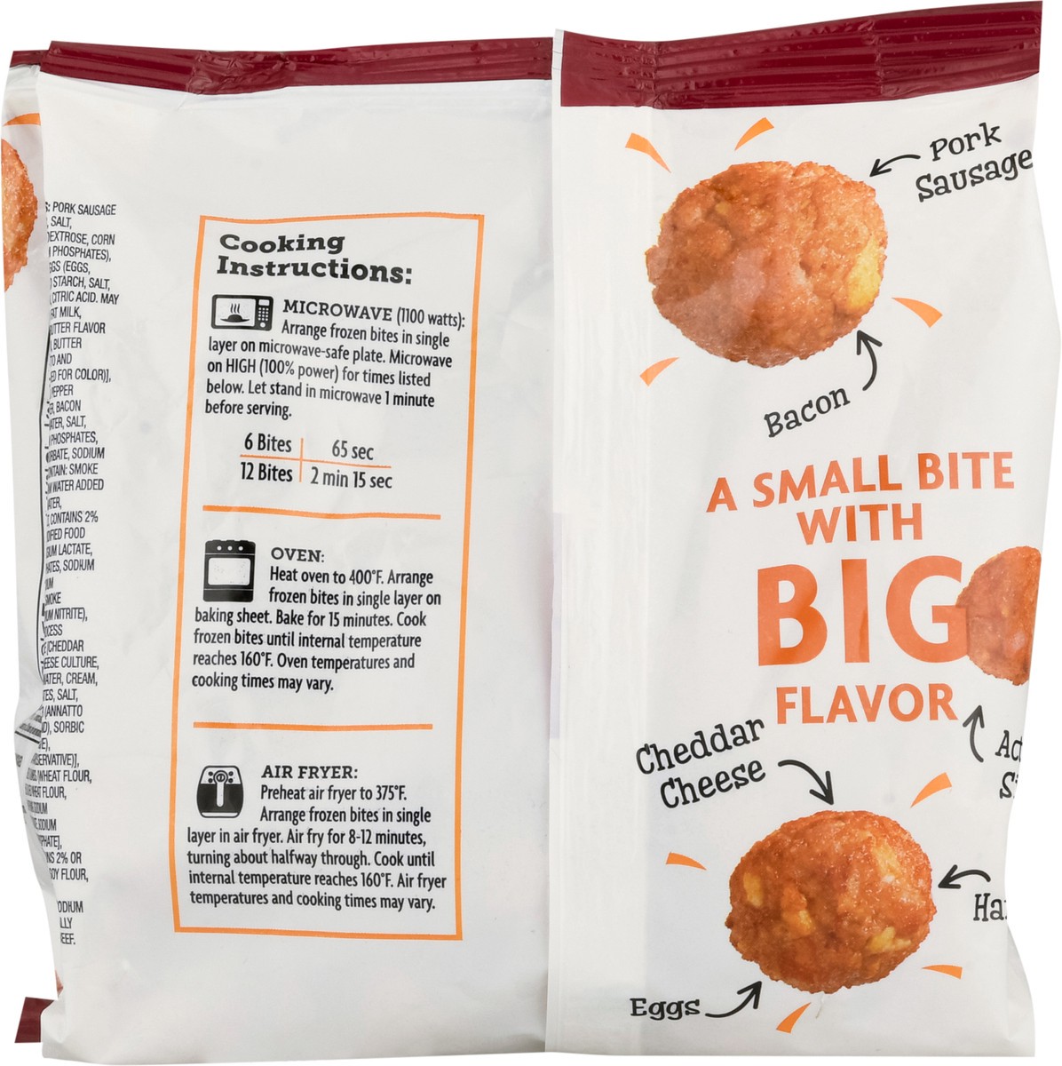 Pork Sausage (Pork, Water, Salt, Flavorings, Dextrose, Corn Syrup, Sodium Phosphates), Scrambled Eggs (Eggs, Modified Food Starch, Salt, Xanthan Gum, Citric Acid. May Contain: Non Fat Milk, Soybean Oi…