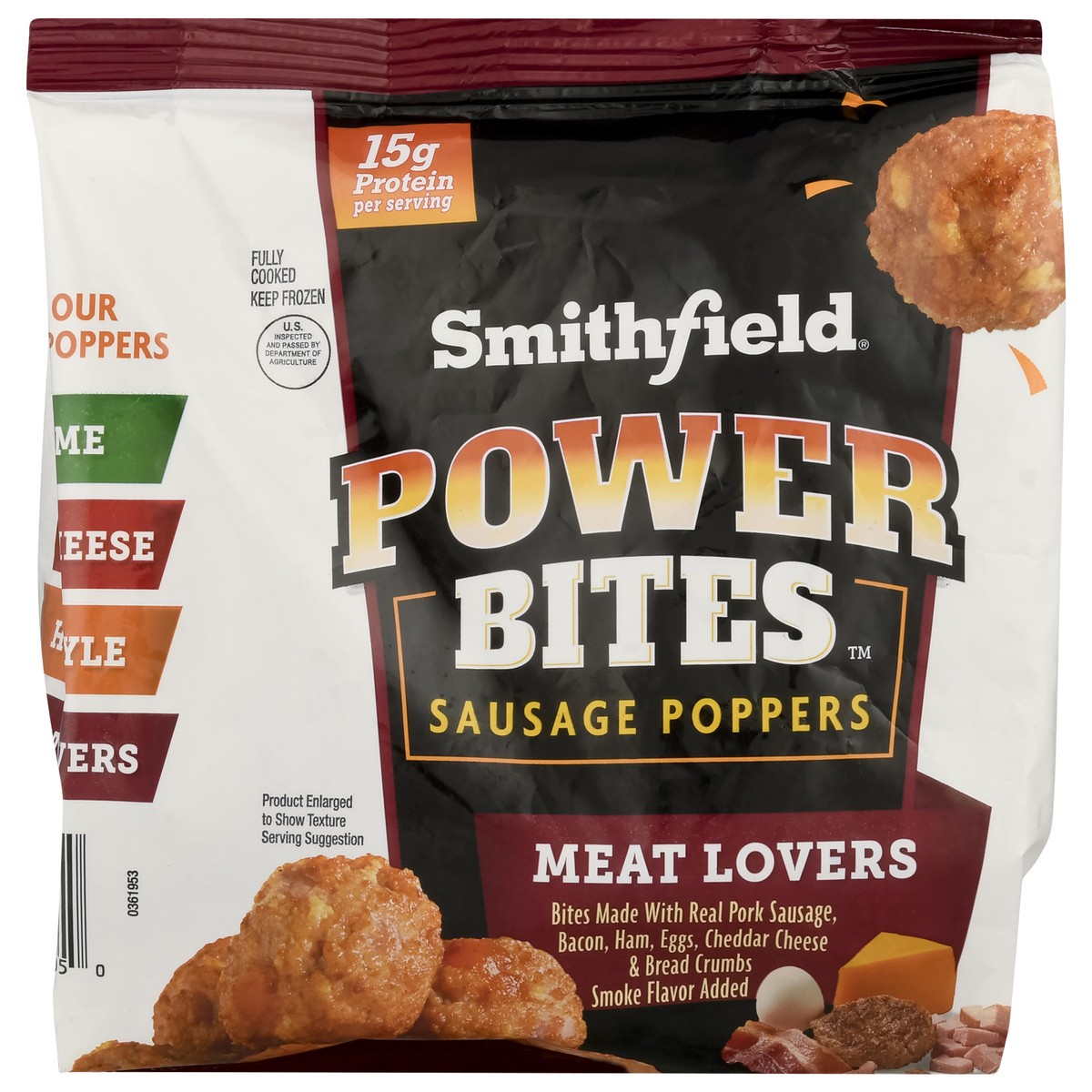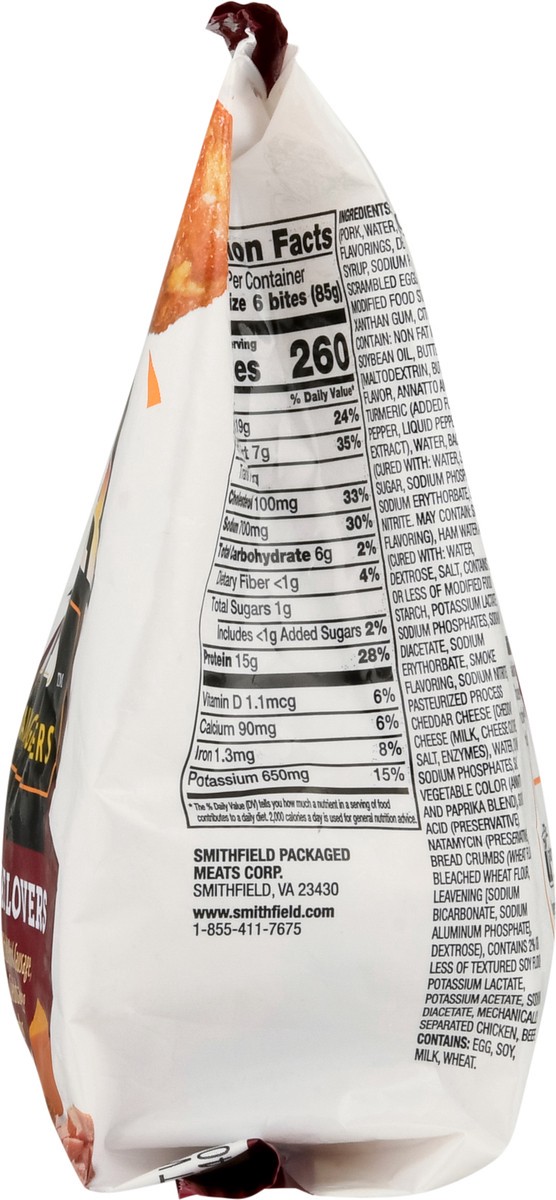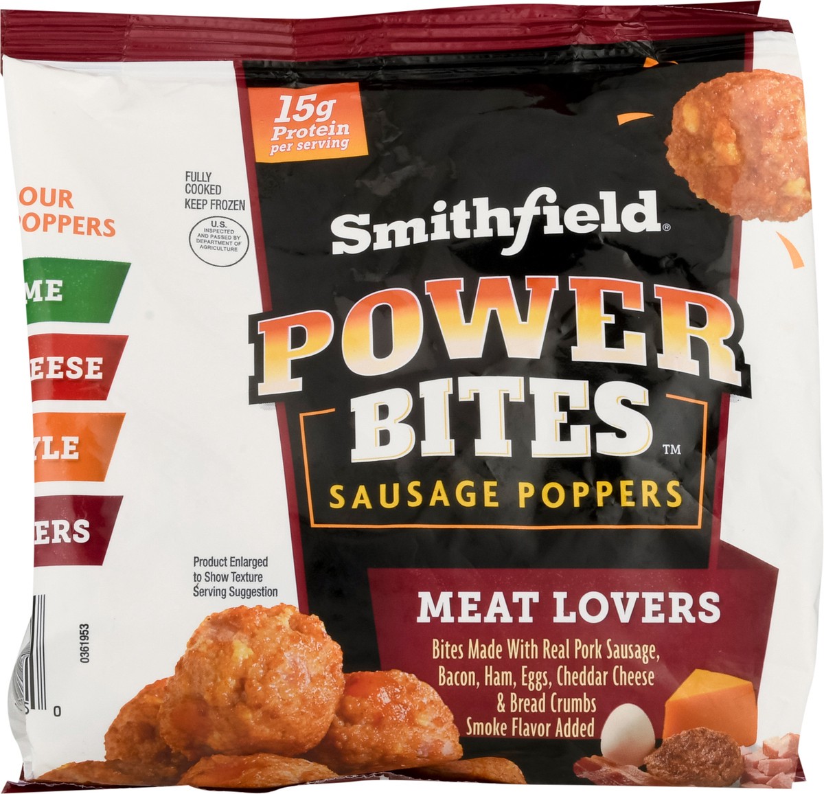 Smithfield Meat Lovers Power Bites are tasty bites made with real Smithfield premium pork sausage, bacon, ham, eggs, cheddar & bread crumbs that you can heat up and eat anywhere. Convenient & flavorfu…