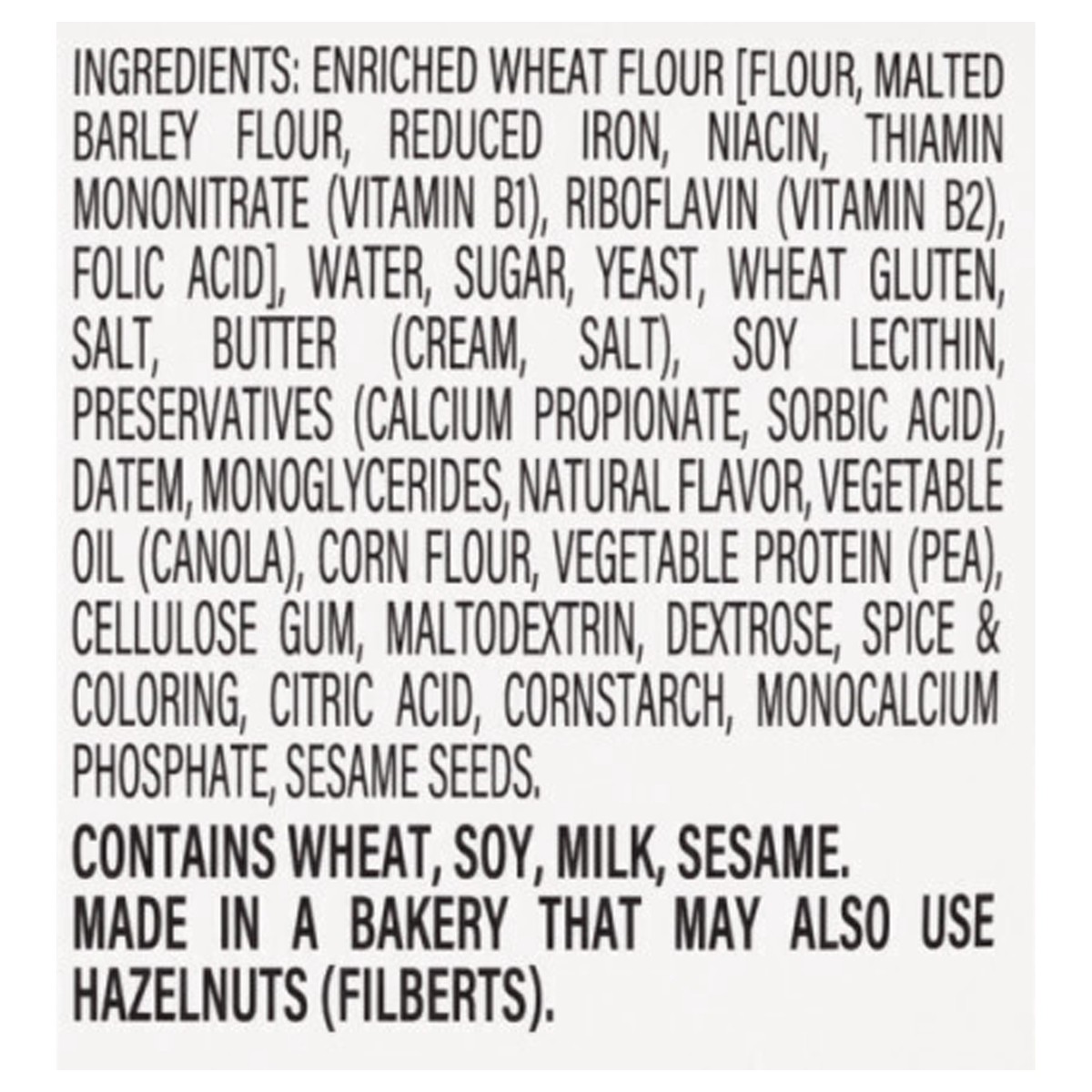 Enriched Wheat Flour [Flour, Malted Barley Flour, Reduced Iron, Niacin, Thiamin Mononitrate (Vitamin B1), Riboflavin (Vitamin B2), Folic Acid], Water, Sugar, Yeast, Wheat Gluten, Salt, Butter [Cream, …