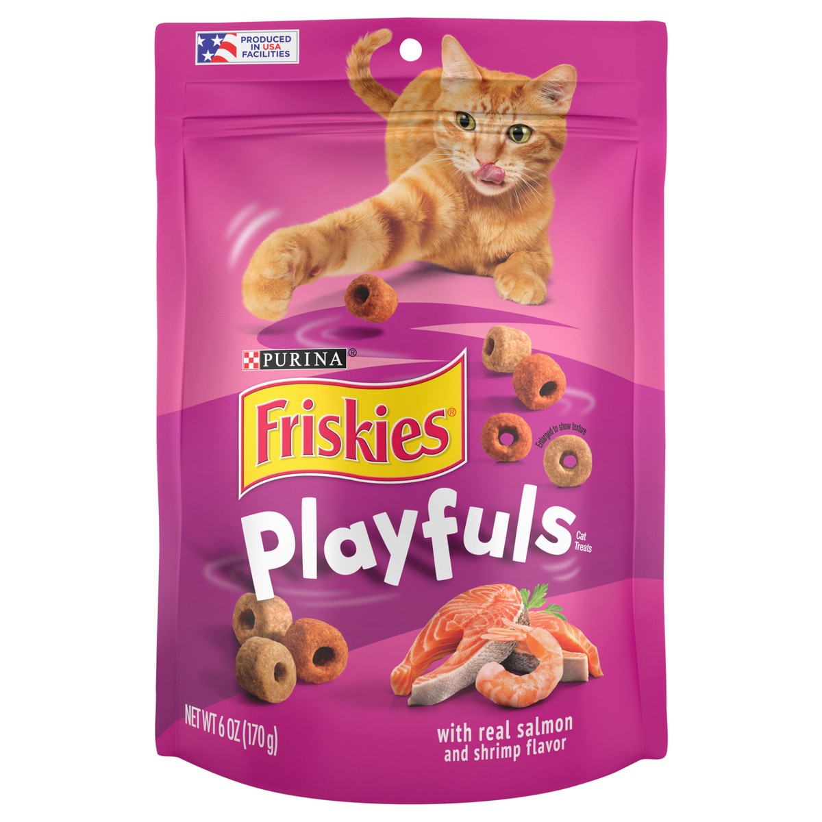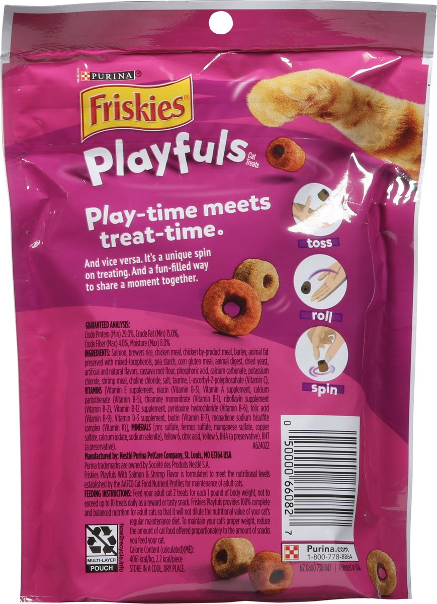 Calorie Content: (calculated)(ME): 4061 kcal/kg, 2.2 kcal/piece. Friskies playfuls with salmon & shrimp flavor is formulated to meet the nutritional levels established by the AAFCO Cat food nutrient p…