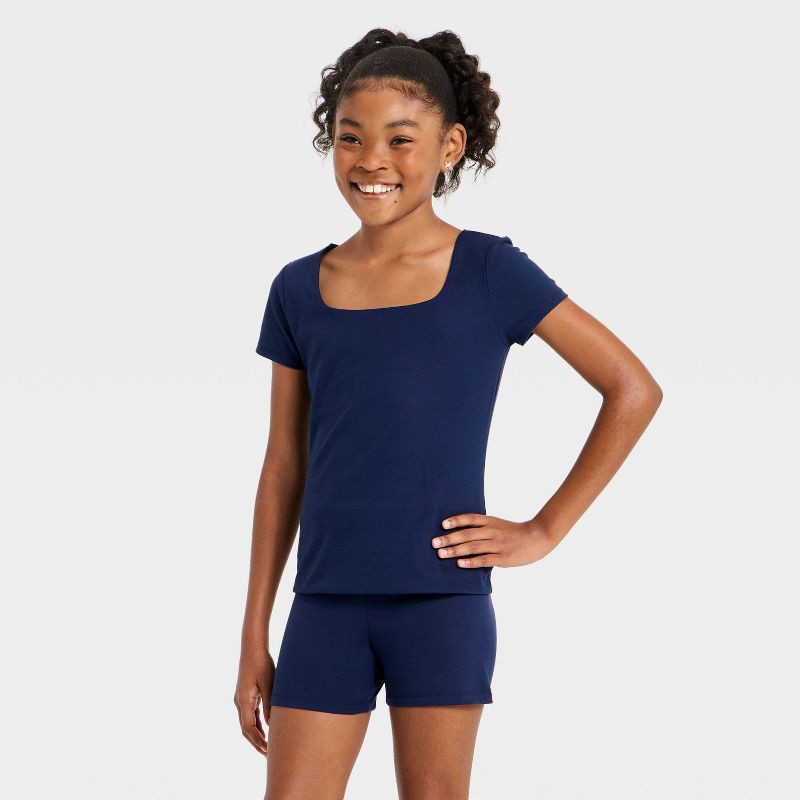 Girls' Square Neck Super Soft T-Shirt - art class™ Blue XL