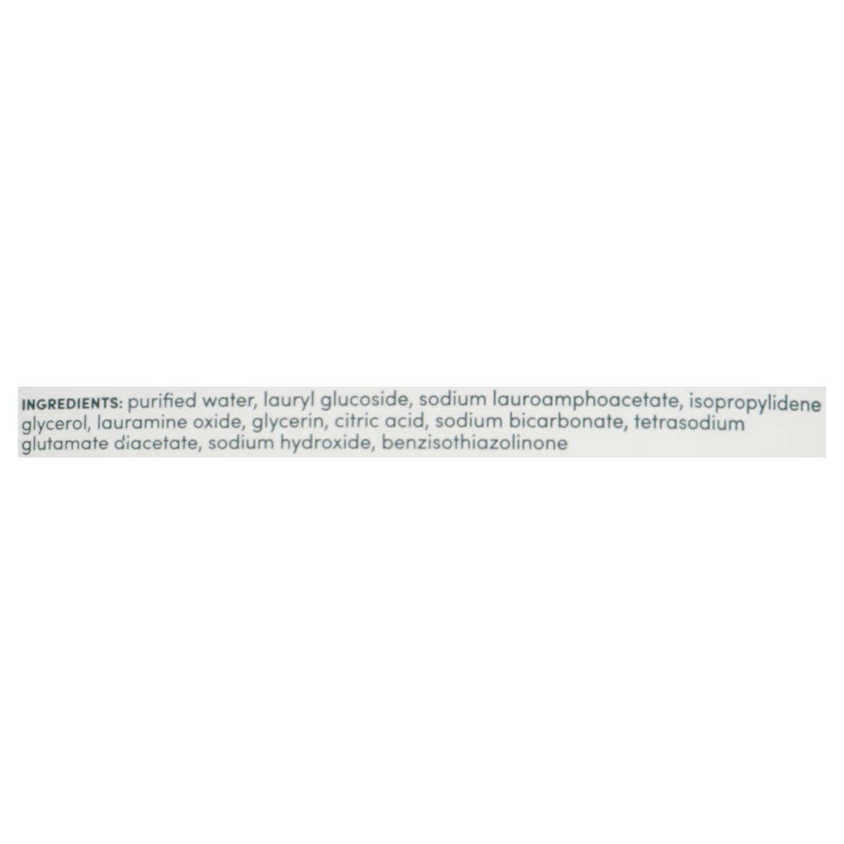 Purified Water, Lauryl Glucoside, Sodium Lauroamphoacetate, Isopropylidene Glycerol, Lauramine Oxide, Glycerin, Citric Acid, Sodium Bicarbonate, Tetrasodium Glutamate Diacetate, Sodium Hydroxide, Benz…