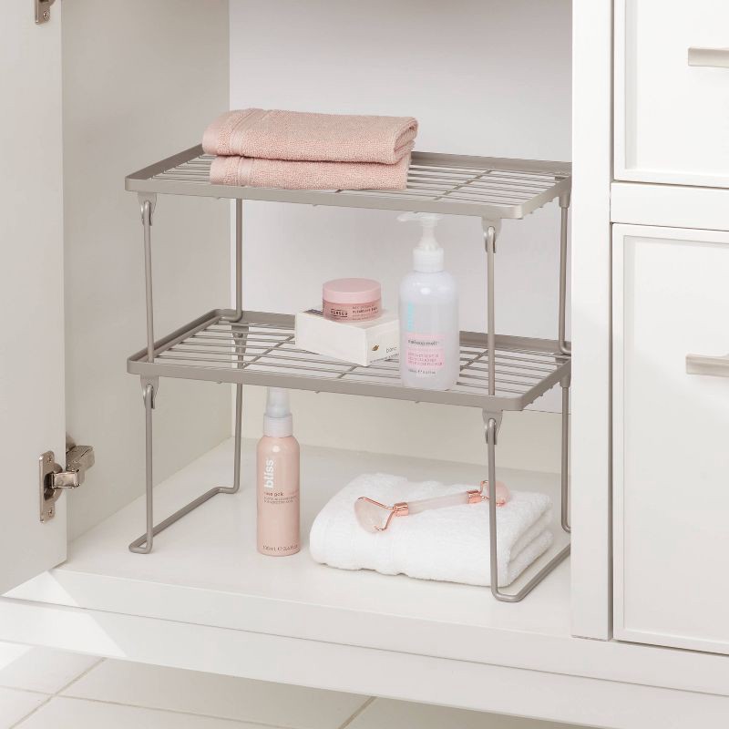 slide 1 of 3, Stacking Shelf Brushed Nickel - Brightroom™: Steel Wire Storage Rack, No Assembly, Foldable Design, 1 ct