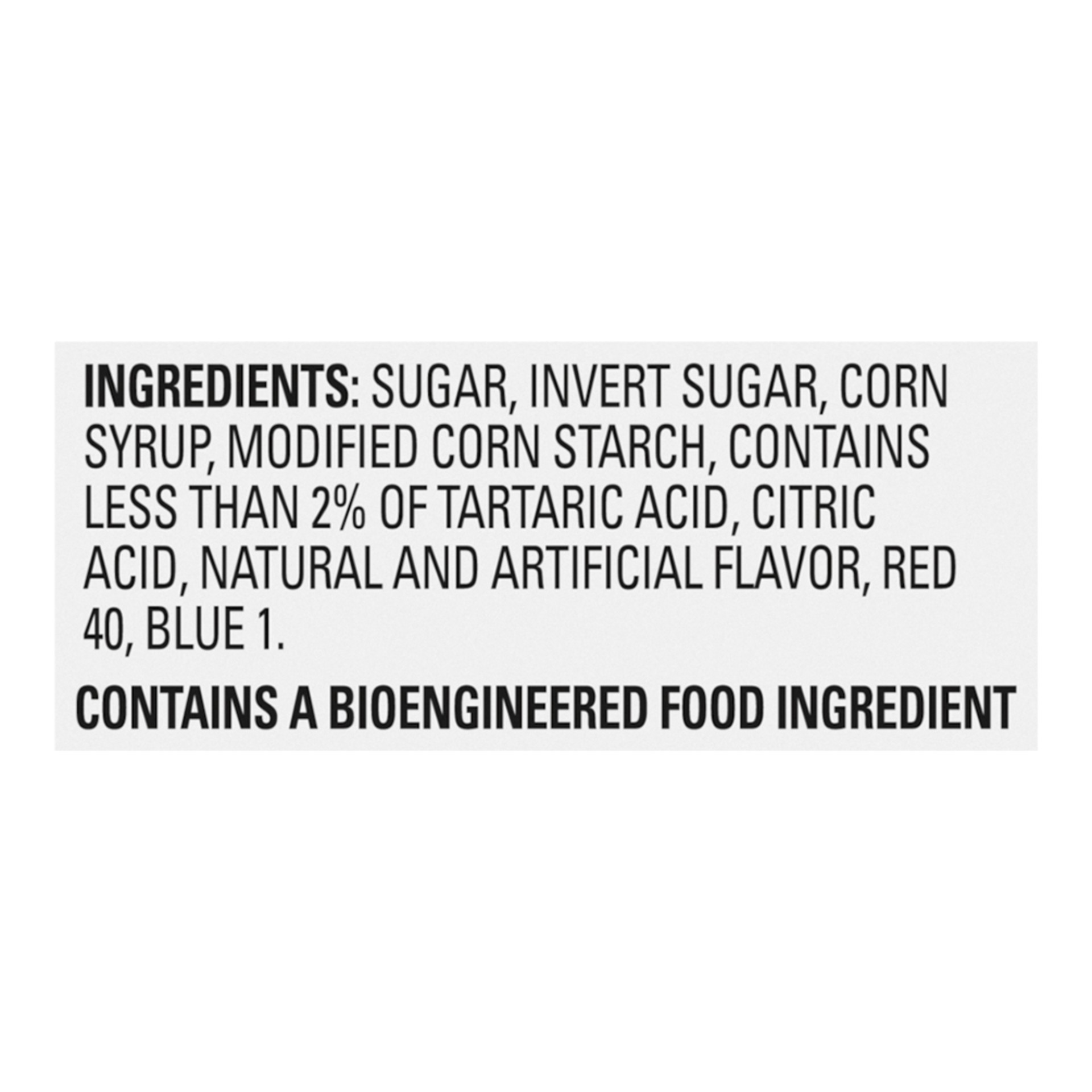 Sugar, Invert Sugar, Corn Syrup, Modified Corn Starch, Contains Less than 2% of Tartaric Acid, Citric Acid, Natural and Artificial Flavor, Red 40, Blue 1.