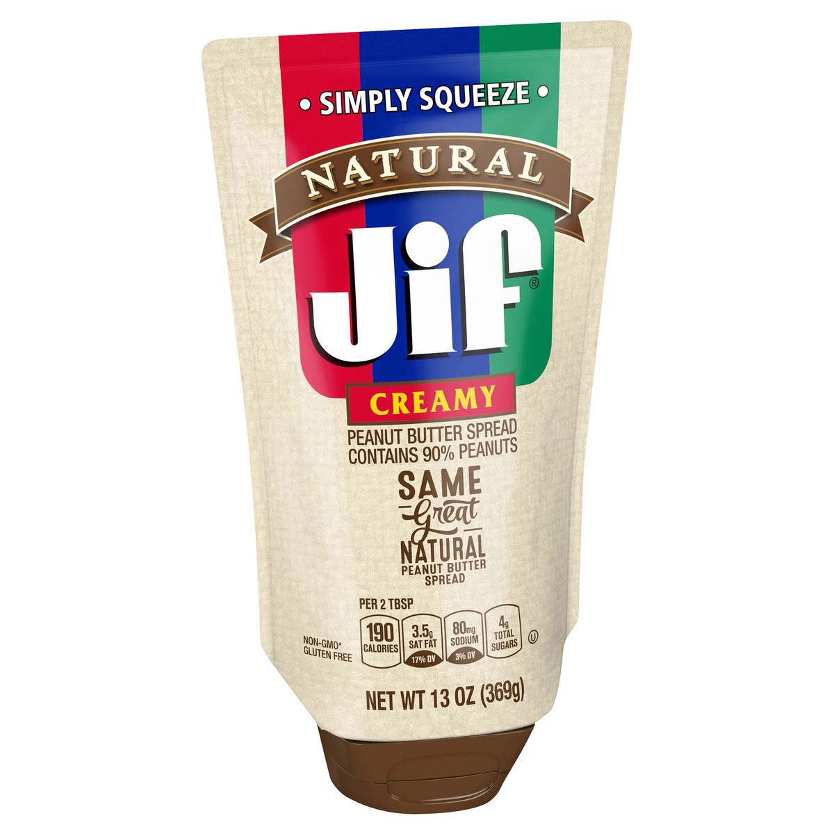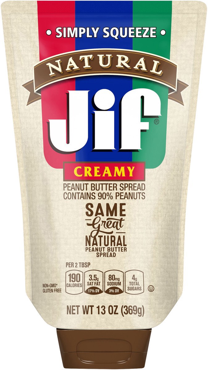 No spoon? No knife? No problem. With Jif Natural Squeeze Creamy Peanut Butter Spread, spreading the love is easier than ever. With just a squeeze of the easy-to-use pouch, you get all the delicious fl…