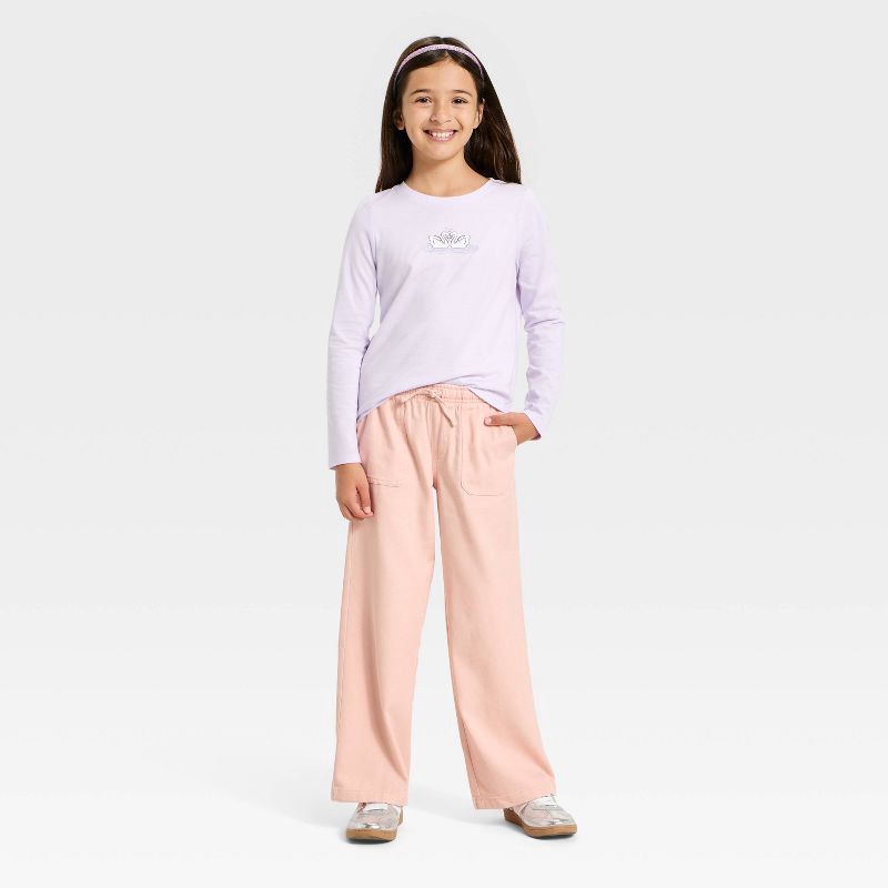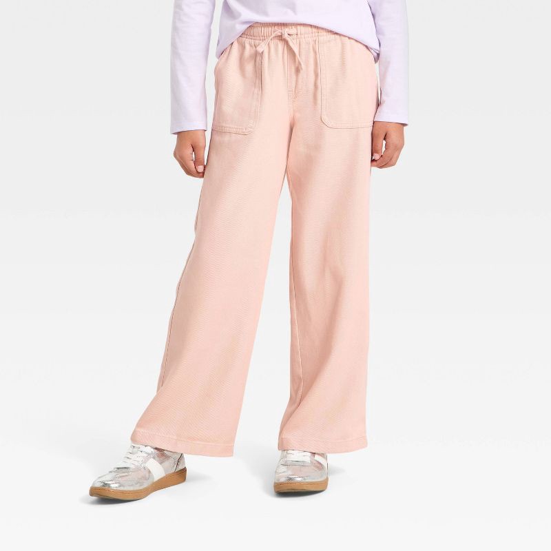 Girls' Woven Wide Leg Pull-On Pants - Cat & Jack™ Coral Pink M