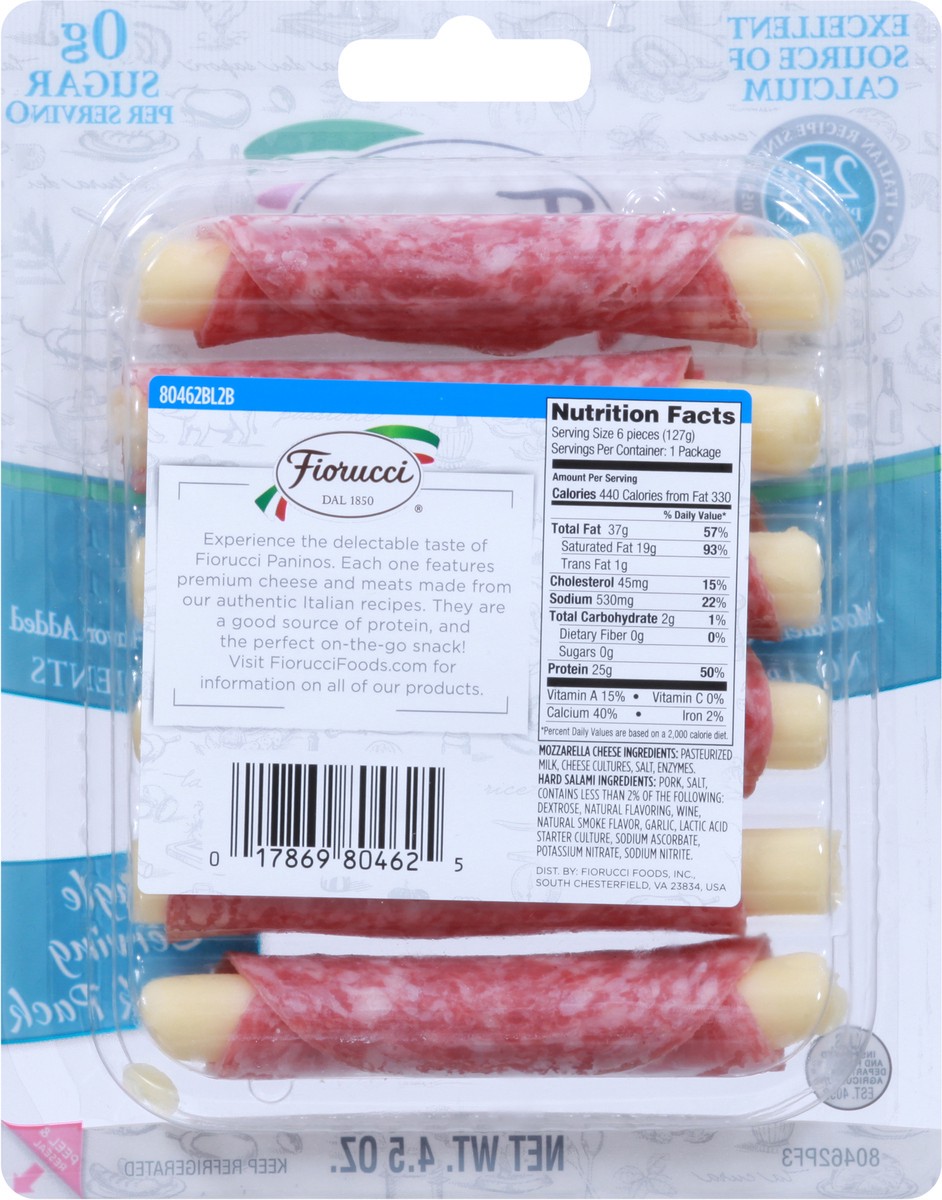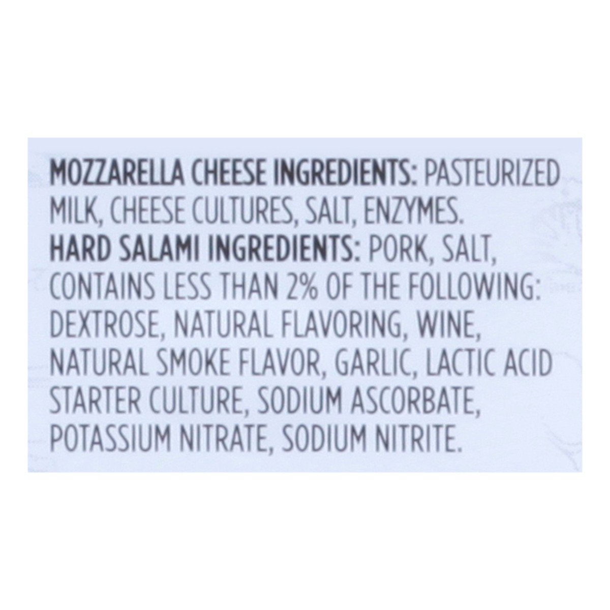 Mozzarella Cheese Ingredients: Pasteurized Milk, Cheese Cultures, Salt, Enzymes, Hard Salami Ingredients: Pork, Salt, Contains Less than 2% of the Following: Dextrose, Natural Flavoring, Wine, Natural…