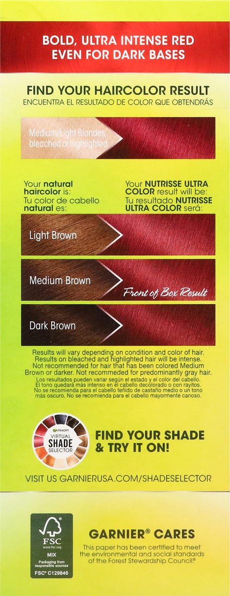 Garnier Nutrisse Ultra Color Nourishing Hair Color Creme delivers up to 8 weeks of bold ultra vibrant fade resistant color in just one step. For all hair textures and even on dark bases with NEW Color…