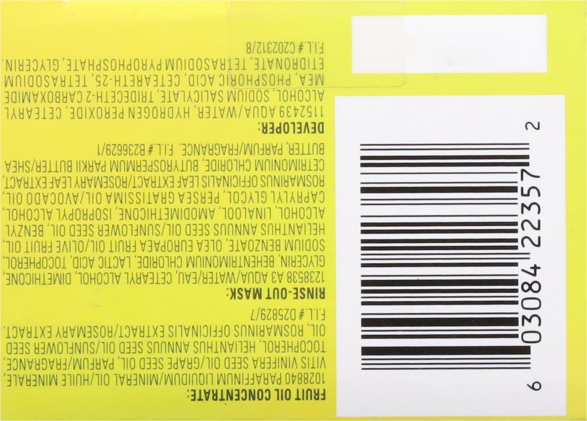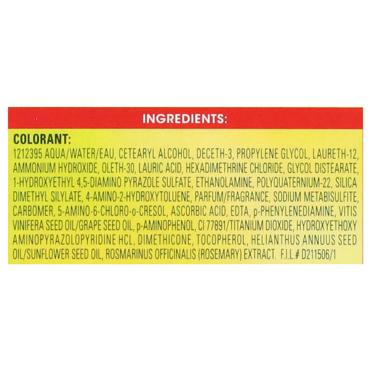 Colorant: Aqua/Water/Eau, Cetearyl Alcohol, Deceth-3, Propylene Glycol, Laureth-12, Ammonium Hydroxide, Oleth-30, Lauric Acid, Hexadimethrine Chloride, Glycol Distearate, 1-Hydroxyethyl 4.5-Diamino Py…