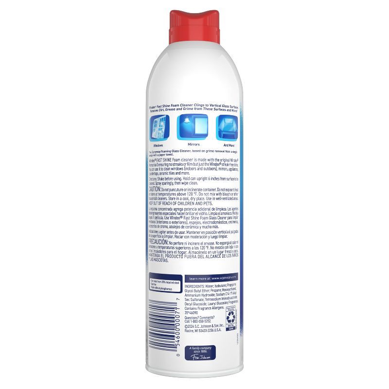 Experience the power of Windex Fast Shine Foam. This fast-acting, deep cleaning foam transforms the glass surfaces in your home with a streak-free shine. Windex Fast Shine Foam removes 2X more dirt an…