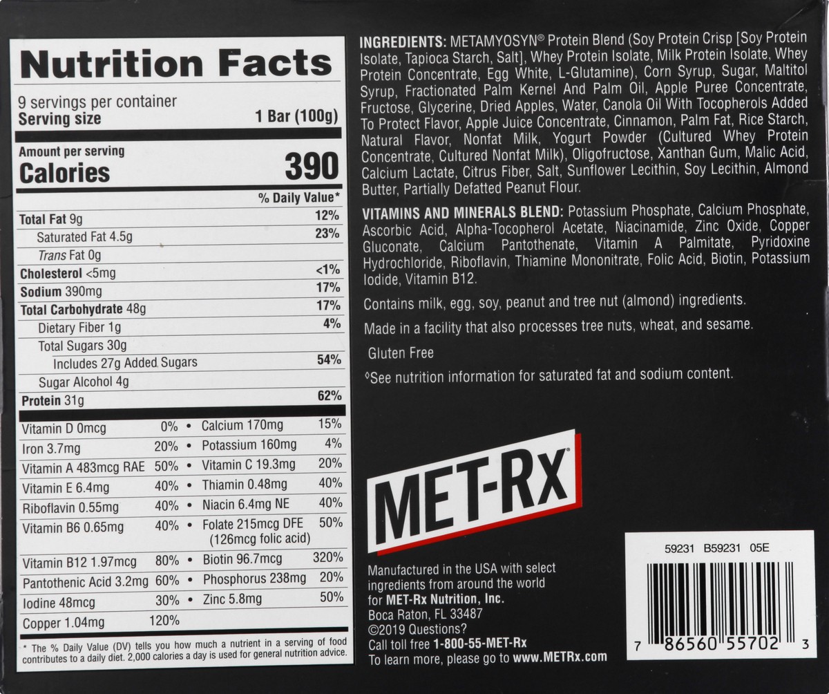 MET-Rx Big 100 Crispy Apple Pie Meal Replacement Bar 9 - 3.52 oz