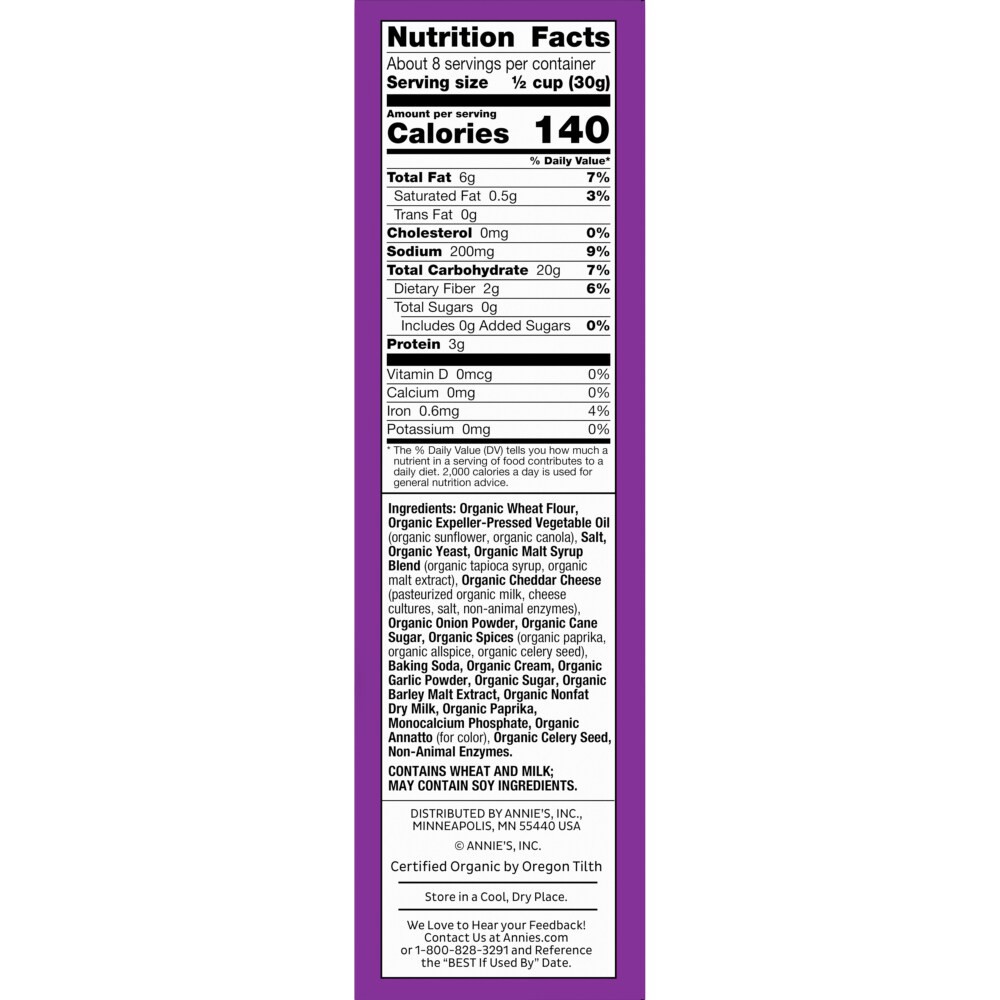 Organic Wheat Flour, Organic Expeller-Pressed Vegetable Oil (Organic Sunflower Oil, Organic Canola Oil) Organic Clarified Butter, Salt, Organic Sugar, Organic Cheddar Cheese (Pasteurized Organic Milk,…