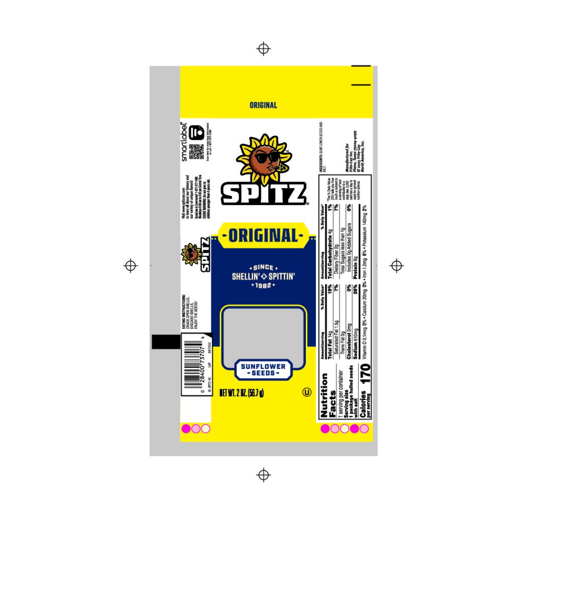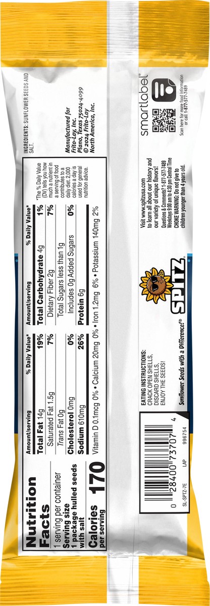 Since shellin' & spittin' 1982. Sunflower seeds with a difference! www.splitzusa.com. SmartLabel: Scan for more food information or call 1-877-577-7489. Visit www.spitzusa.com to learn all about our h…