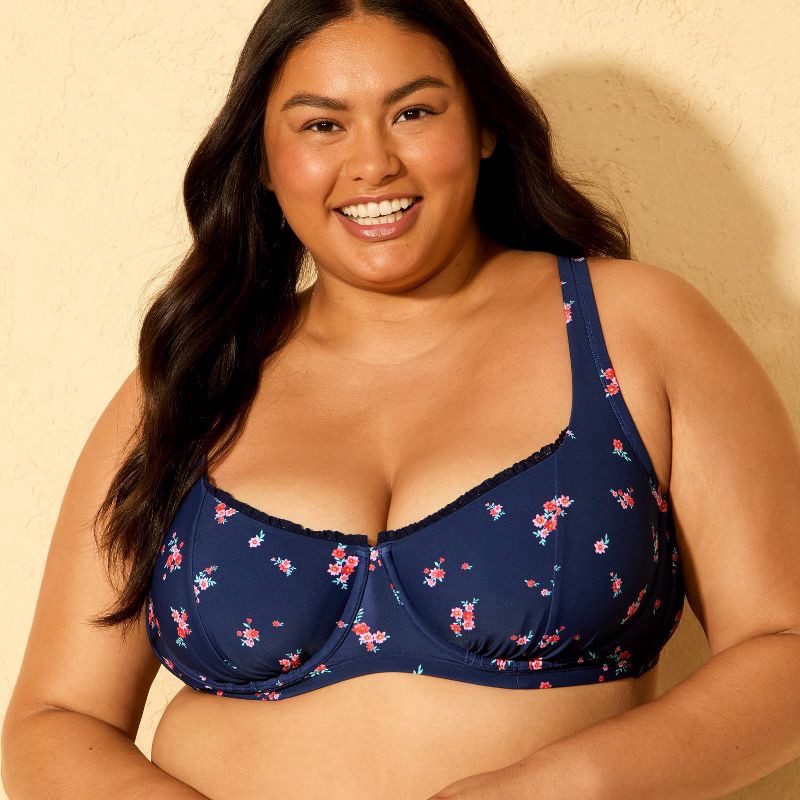 Women's Floral Print Underwire Bikini Top - Wild Fable™ Navy Blue 17