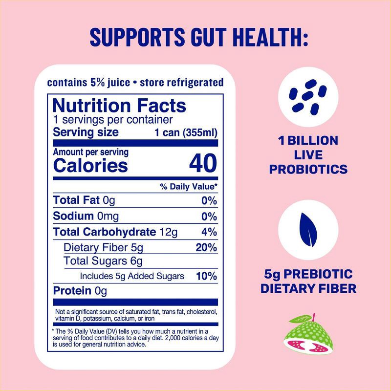 - 1 billion live probiotics + 5g dietary fiber to support gut health