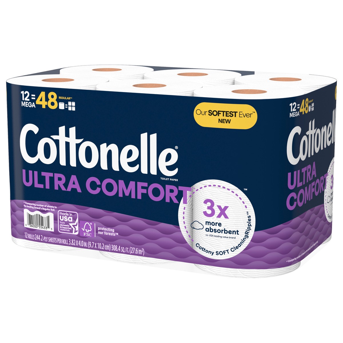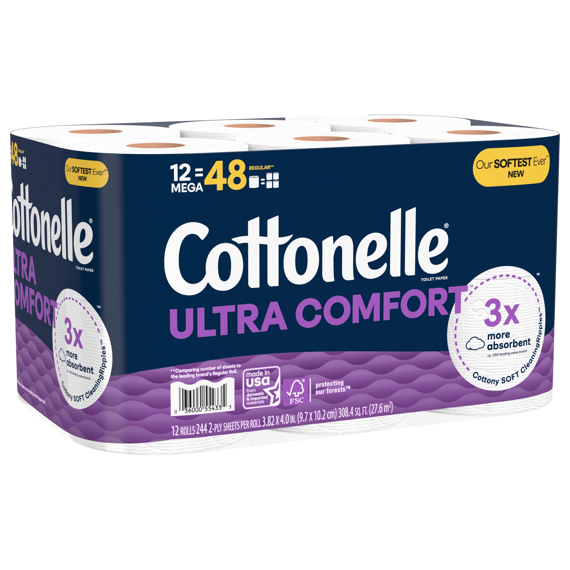 Cottonelle Ultra Comfort Mega Toilet Paper Rolls 244 Sheets Per Roll - 12 Count