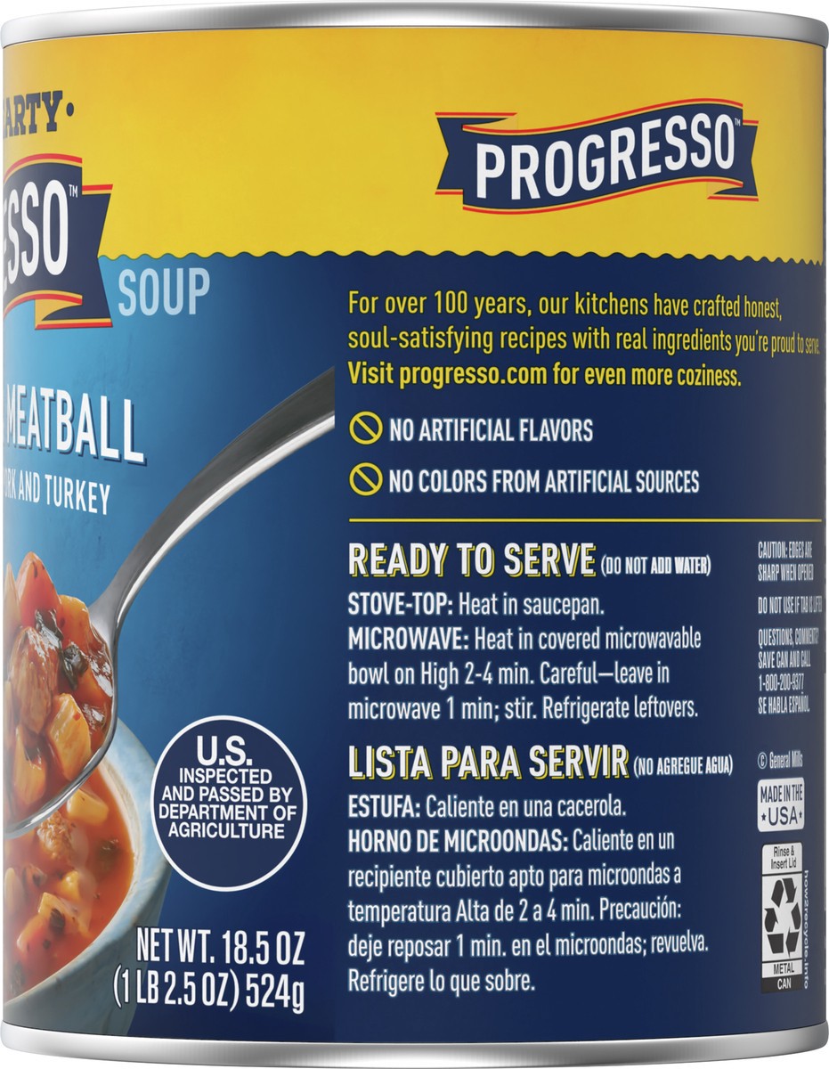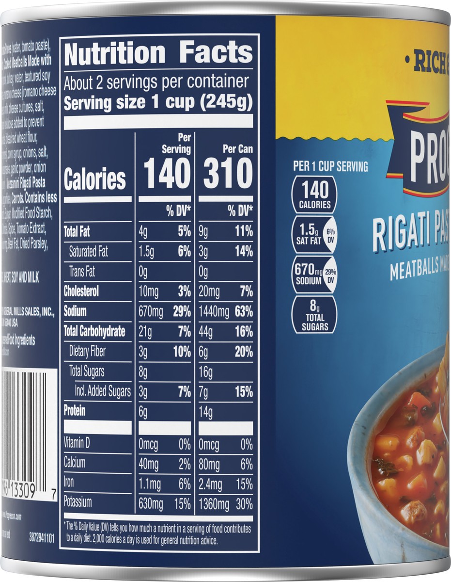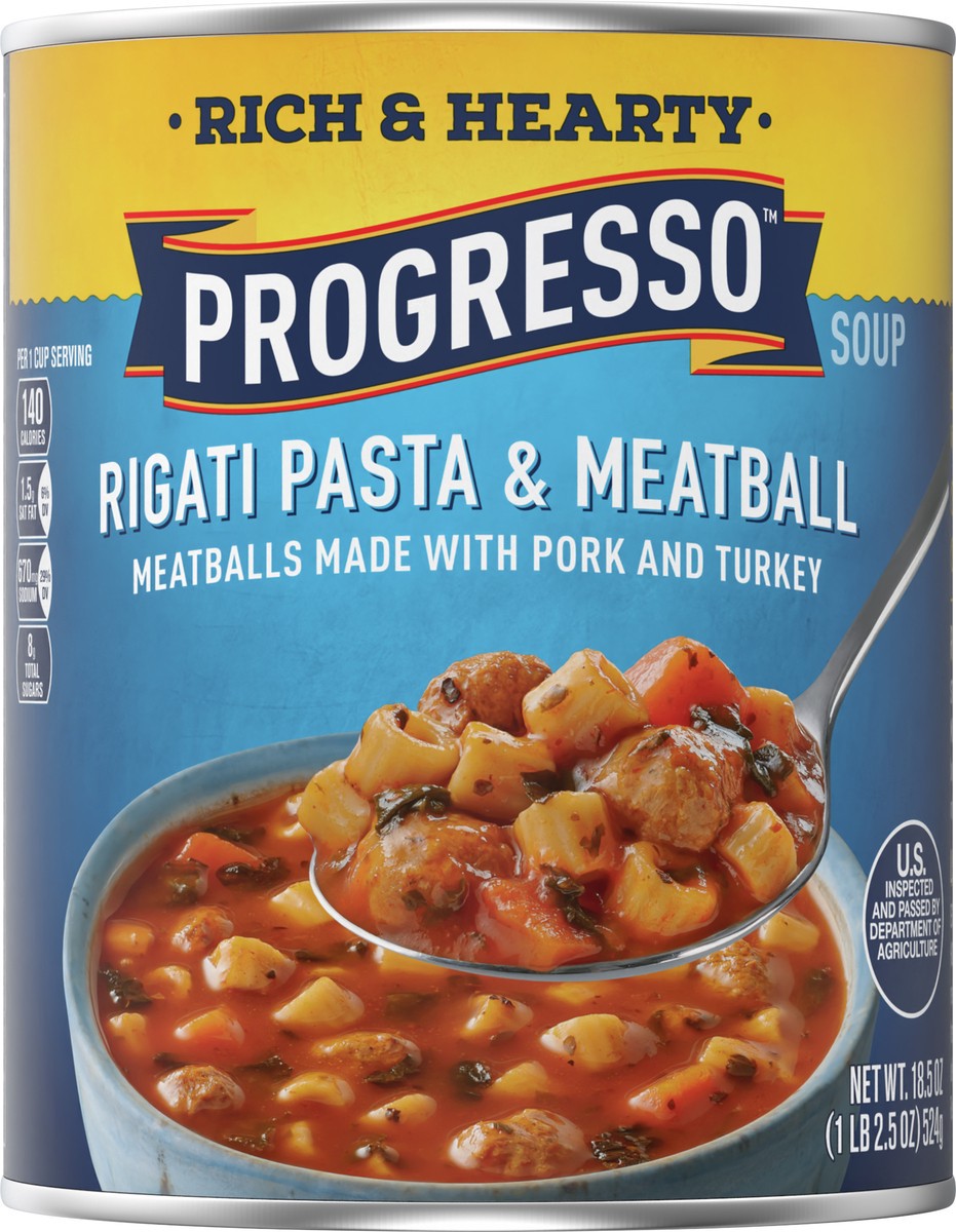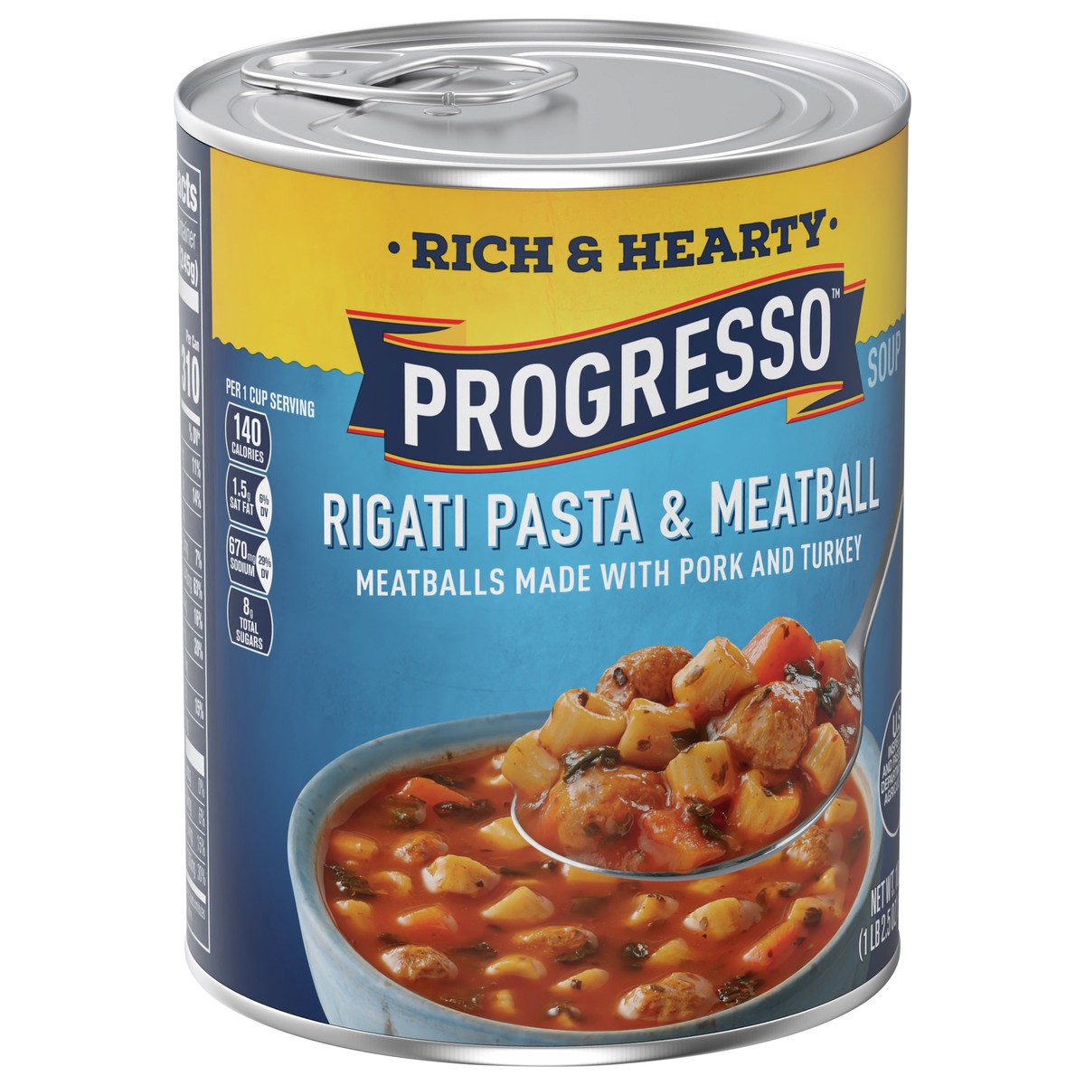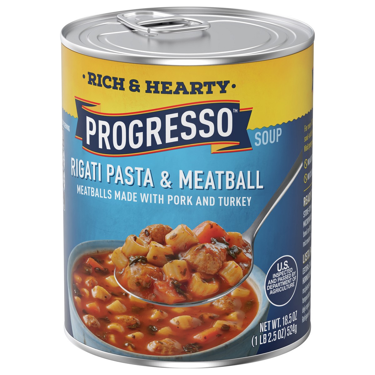 Progresso Rigati Pasta and Meatball Soup, Rich and Hearty Canned Soup, 18.5 oz