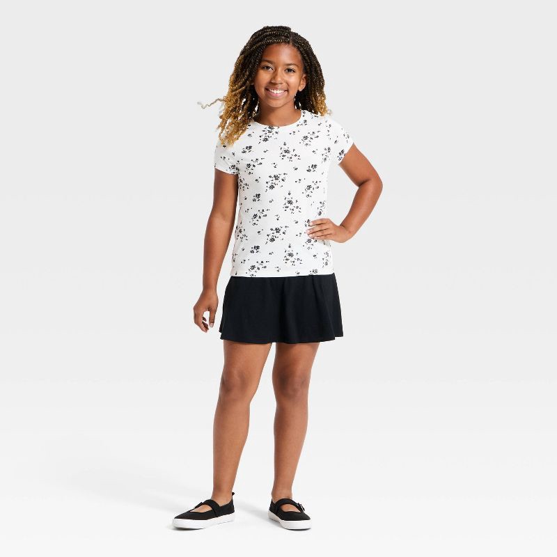 Girls' Short Sleeve Jersey Floral T-Shirt - Cat & Jack™ Cream/Black XS